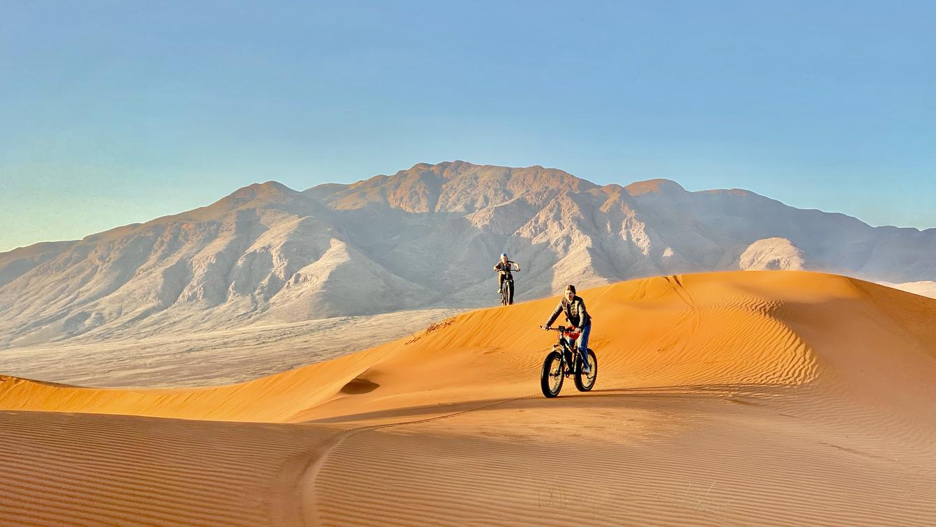 Pedal through the shifting sands and have the opportunity to connect with the desert's beauty. Morning rides can be combined with a Village Tour with a lunch or end back in camp where you dip into your private chiller. Evening rides end with sundowners in the dunes.