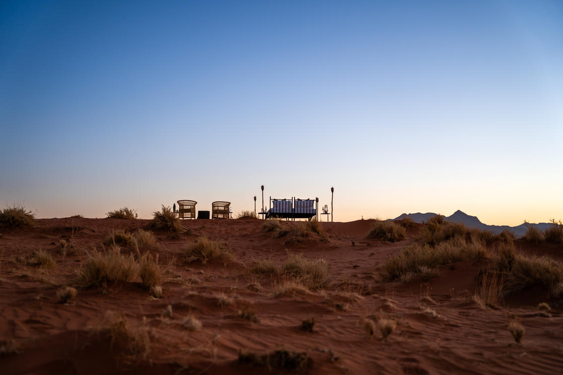 The Namib Desert sets the stage for an extraordinary dining location. Enjoy your sleep out with a simple dinner hamper under the vast African sky and wake up to a sunrise coffee with the dunes as your backdrop.