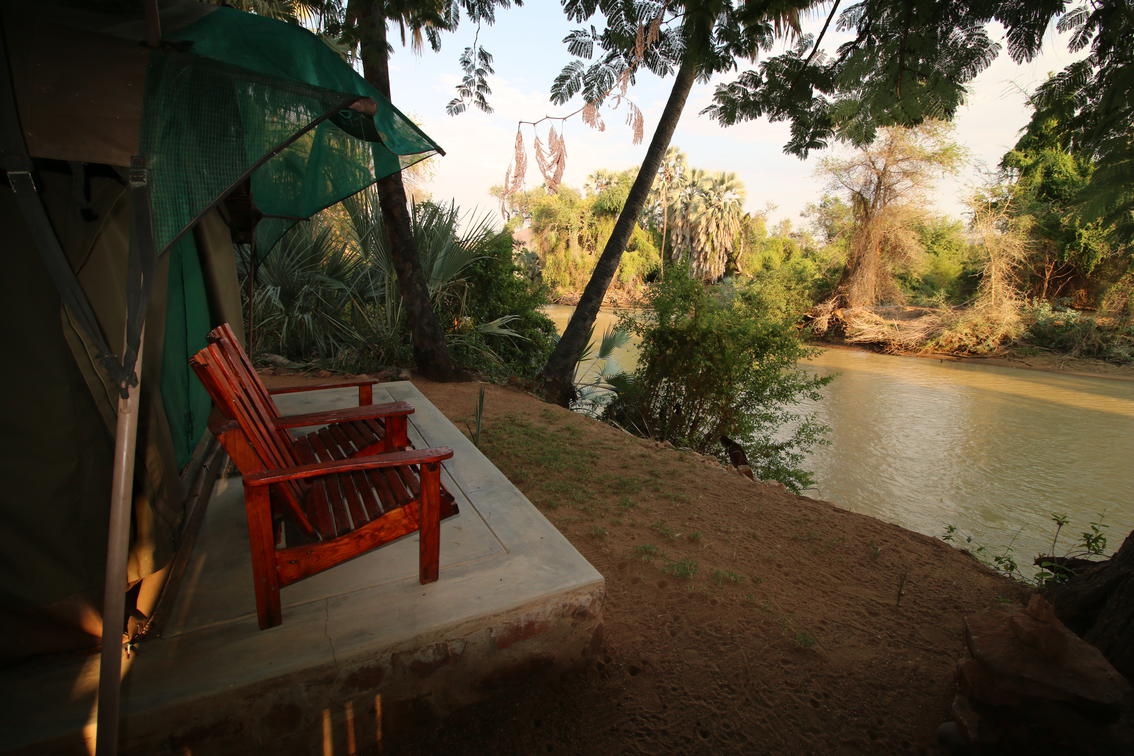 Epupa Camp has one honeymoon suite with a queen-size bed, with electrical lights, an en suite bathroom and mosquito netting at the doors and windows. A private patio overlooks the Kunene River.