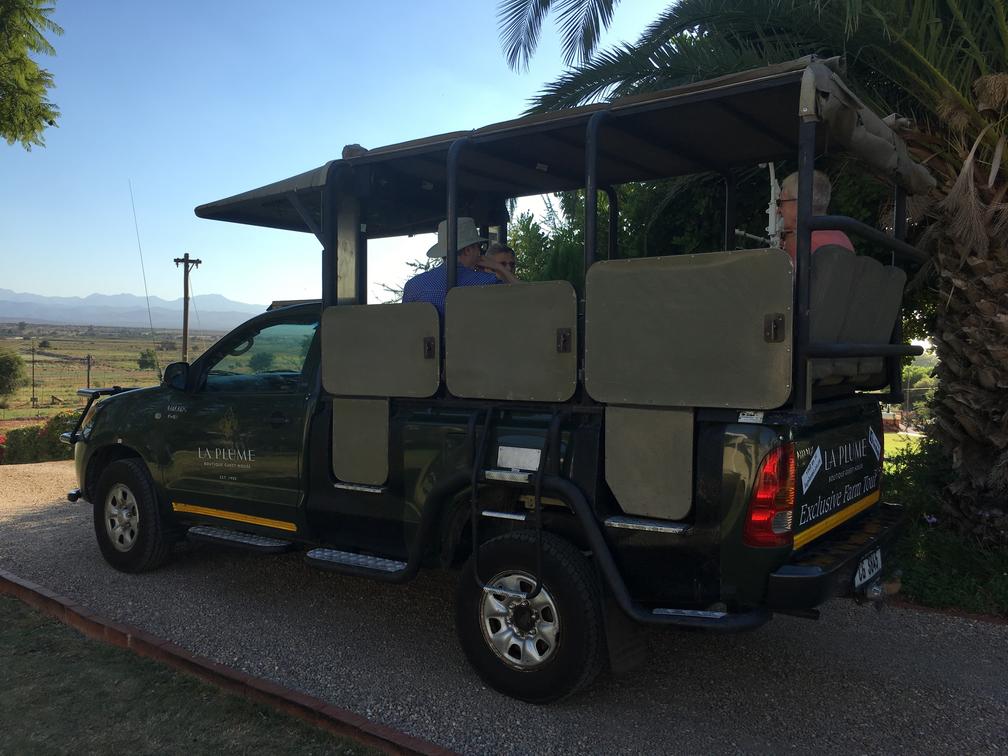 A signature highlight of any stay at La Plume, our exclusive Farm Tour offers an authentic glimpse into life on a sustainable working farm. Begin your morning with coffee in the garden gazebo before joining owner Bartel for a pre-arranged guided tour aboard an open safari vehicle. Explore the daily rhythms of ostrich, alfalfa, and cattle farming, and gain unique insight into the fascinating world of ostrich farming from one of the region’s leading experts.