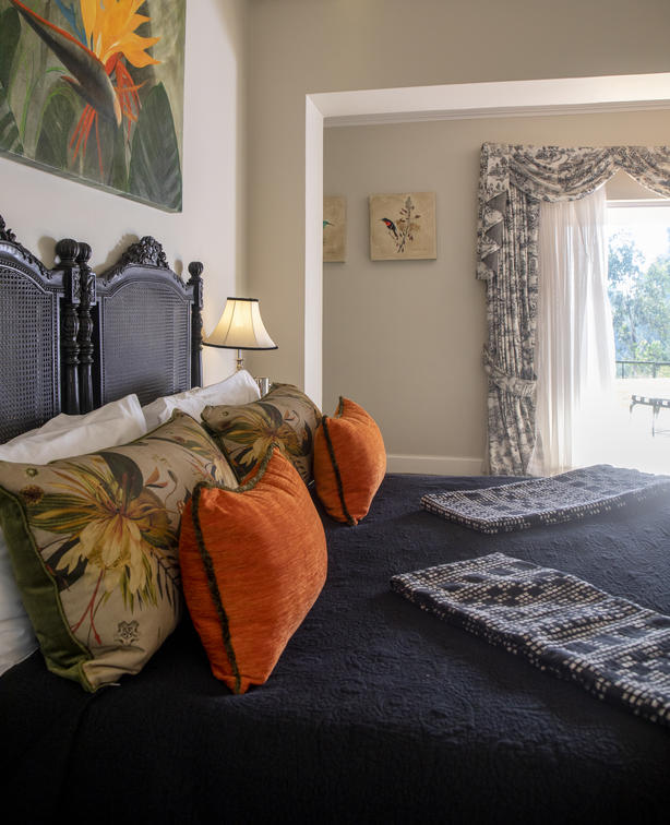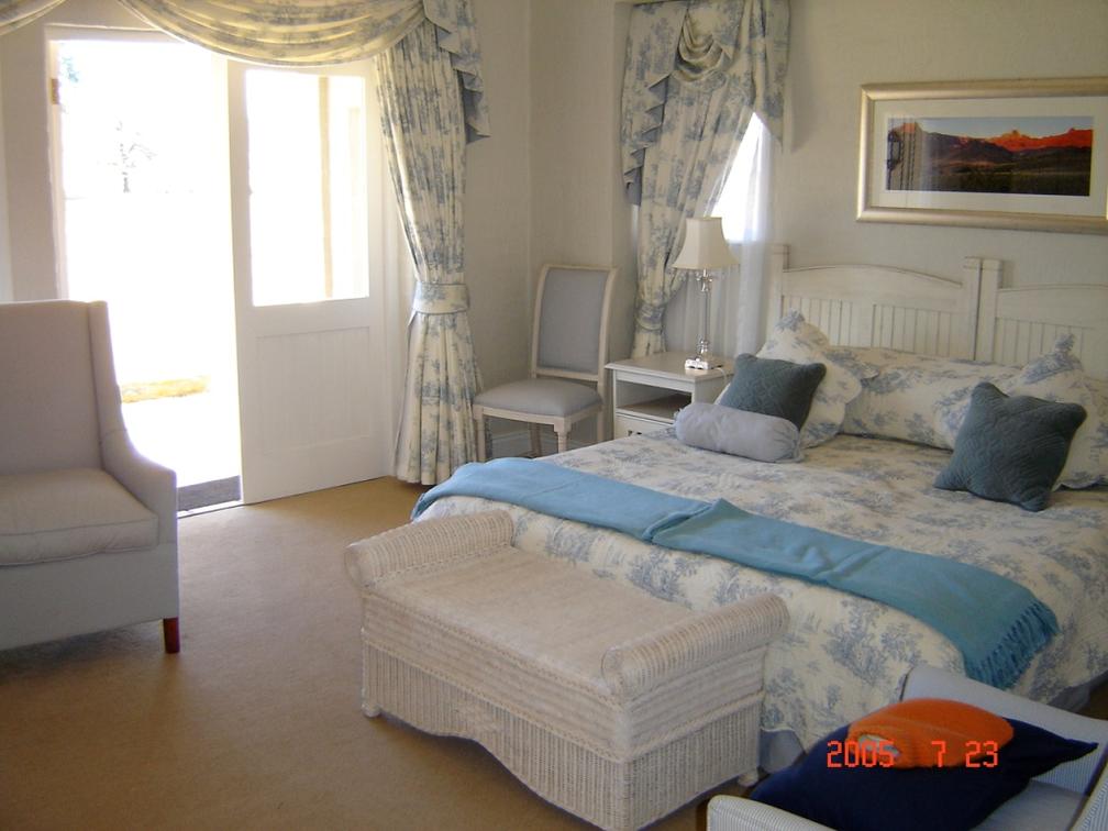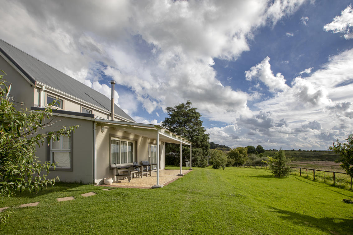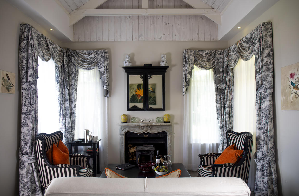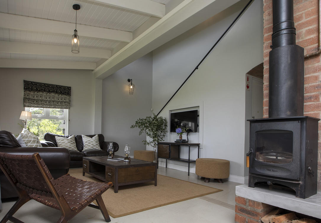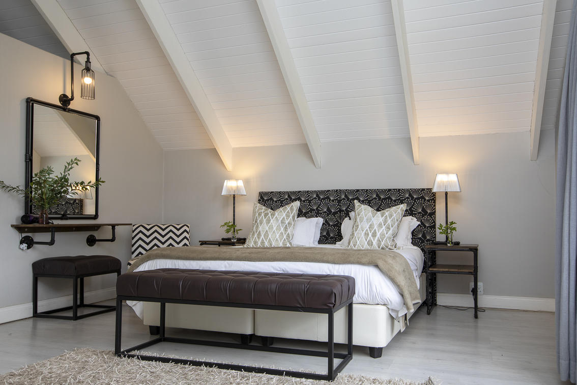 Our Deluxe suites have a view of our rolling lawns and trout dam. Each room has a king-size bed, dressing-room area, bathroom with bath and shower, under floor heating in both bathroom and bedroom, air-conditioning, private balconies, TV and Netflix.