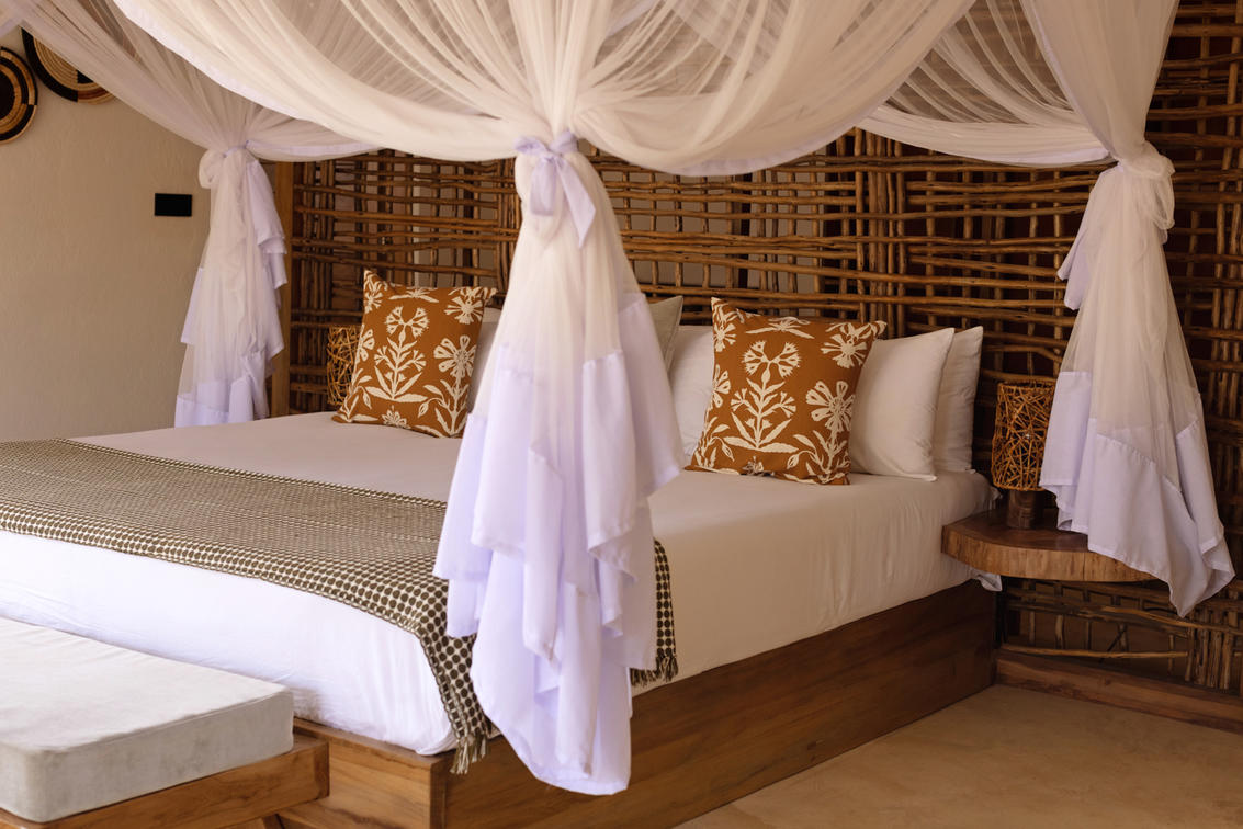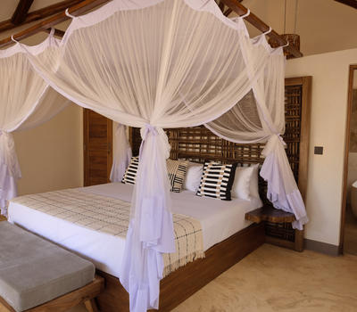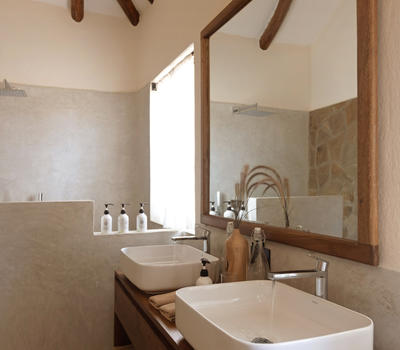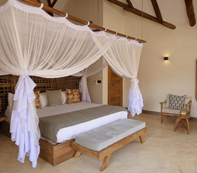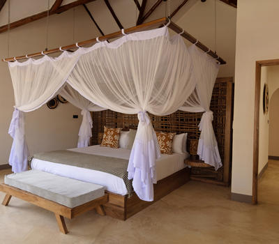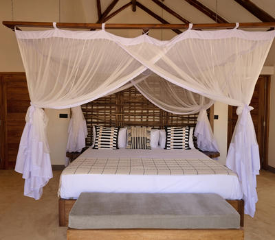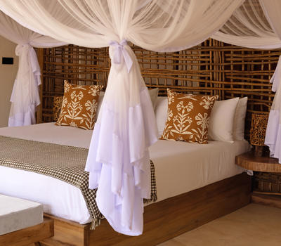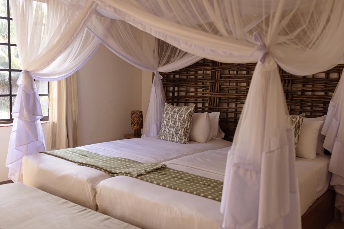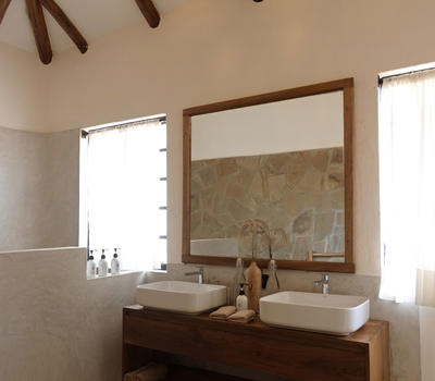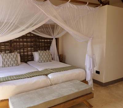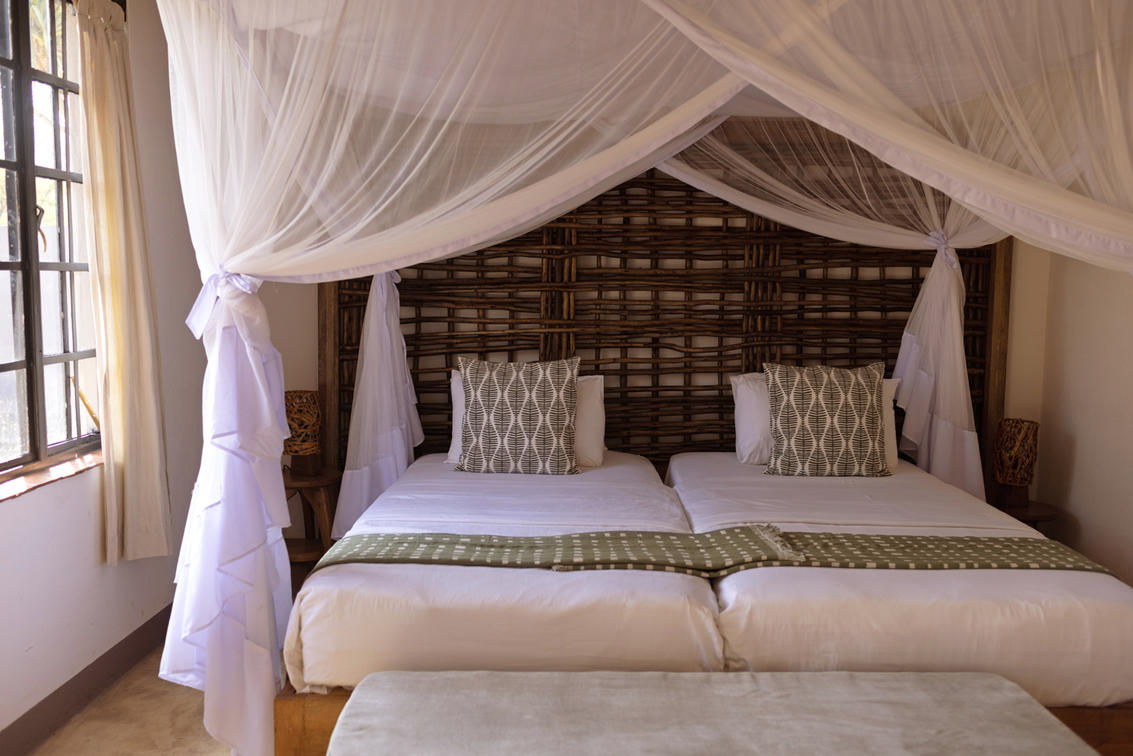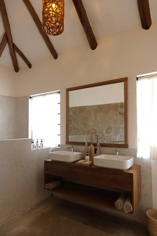 All rooms have En-suite bathrooms with flush toilet and hot showers. 24-hr electricity is provided by a Solar and inverter system and all rooms enjoy charging facilities in the room. Complimentary wifi is on offer throughout the villas. Bathrooms have full guest amenities, a room safe, a desk to work from for those that need and complimentary water. Rooms are made up as doubles or twins with an additional bed in some rooms possible. Laundry is available at a cost but for those booking all inclusive the service is free. The rooms are serviced both in the morning and in the evening for turn down.