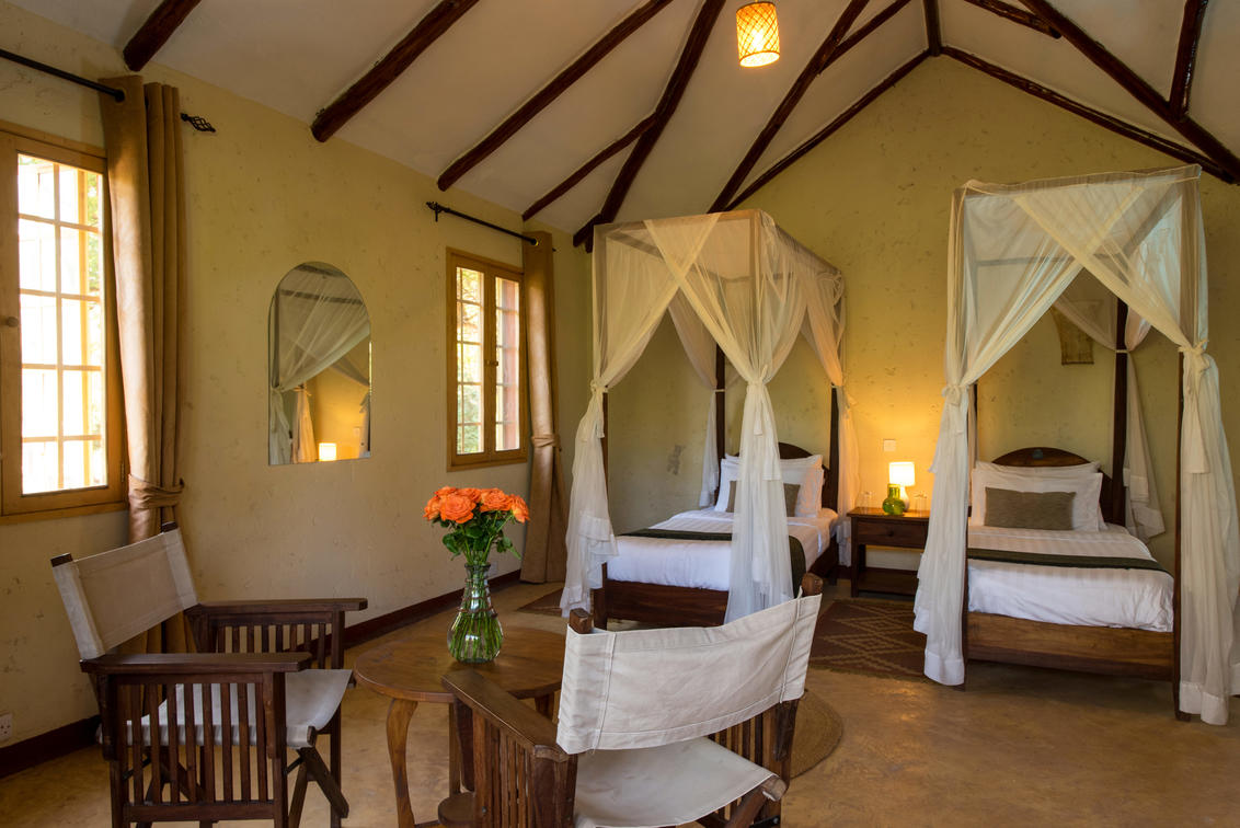 All rooms have En-suite bathrooms with flush toilet and hot showers. 24-hr electricity is provided by a Solar and inverter system and all rooms enjoy charging facilities in the room. Complimentary wifi is on offer throughout the villas. Bathrooms have full guest amenities, a room safe, a desk to work from for those that need and complimentary water. Rooms are made up as doubles or twins with an additional bed in some rooms possible. Laundry is available at a cost but for those booking all inclusive the service is free. The rooms are serviced both in the morning and in the evening for turn down.