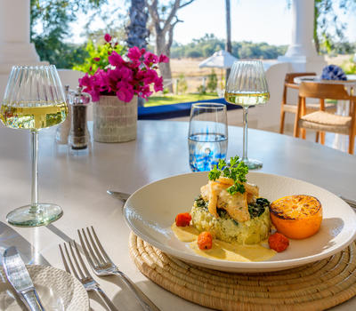 The lounge and restaurant terrace flows effortlessly out onto the lawns overlooking the Thamalakane River, where guests may choose to enjoy a seasonal picnic basket with artisanal delights. Boasting one of finest chefs in Botswana with an emphasis on local produce, The Eden Kitchen and Restaurant presents a varied a la carte menu, tempting the palate with both local and international favourites, inviting conviviality.