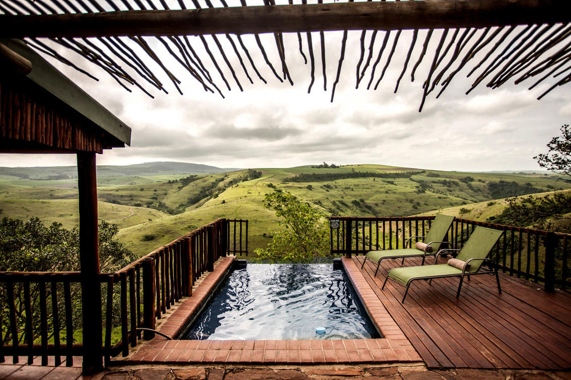 A 6-sleeper chalet with fully-equipped kitchen facilities. Three en-suite bedrooms, lounge area, private rim-flow plunge pool, braai boma & veranda with incredible views of the Gwahumbe Valley.
