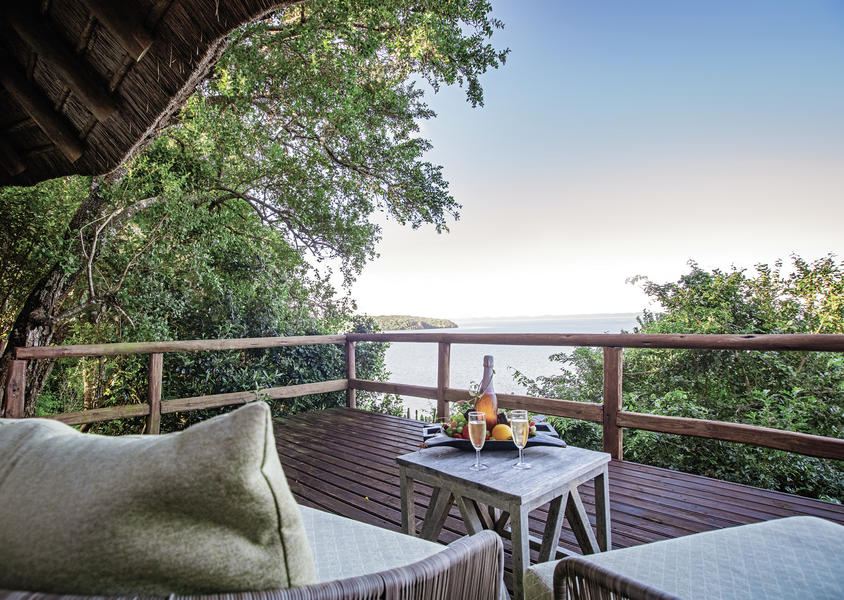 As the sun sets, evenings unfold in soulful celebration. The call of the kudu horn signals the start of the lakeside boma experience, where guests gather around the fire for a hand-washing ceremony, followed by a feast of locally inspired dishes and Zulu song beneath the stars.