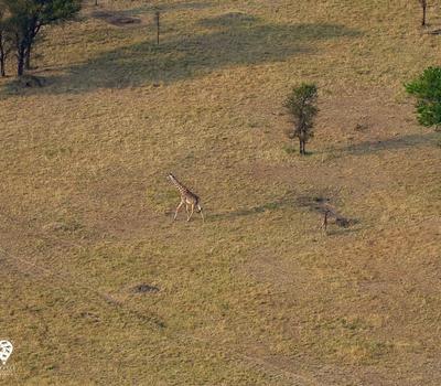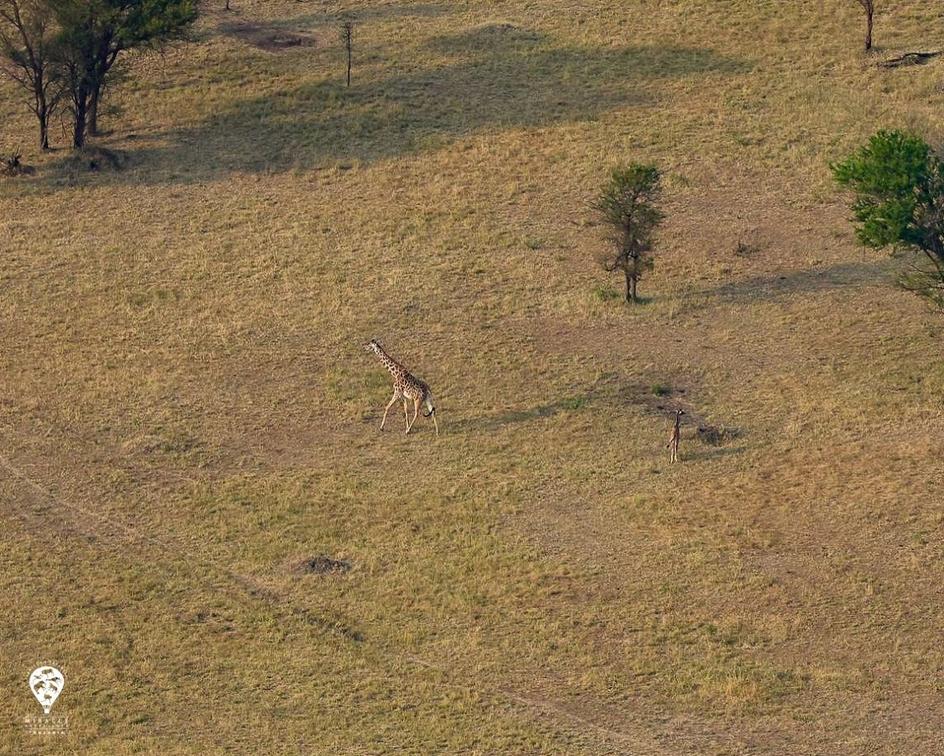 From the sky, the Grumeti River winds like a silver ribbon through the landscape, drawing herds of elephants, giraffes, and antelopes to its banks. It’s also a vital crossing point during the Great Migration, where wildebeests and zebras make their daring passage, often shadowed by predators waiting in still silence.