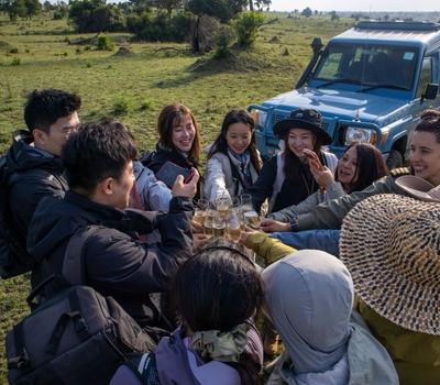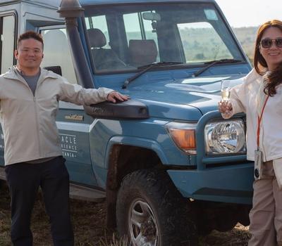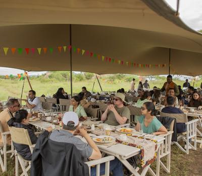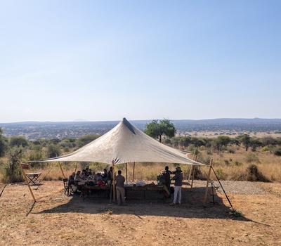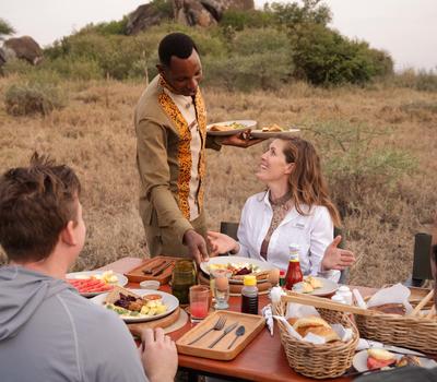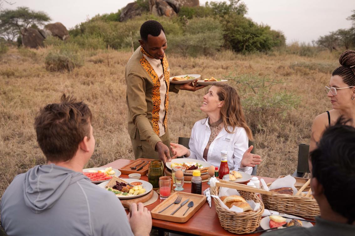 After landing, the adventure continues with a delightful bush breakfast at our base near the Research area, just 10 minutes from the airstrip. Here, guests celebrate their flight with champagne toasts, warm hospitality, and the magic of the Serengeti all around.