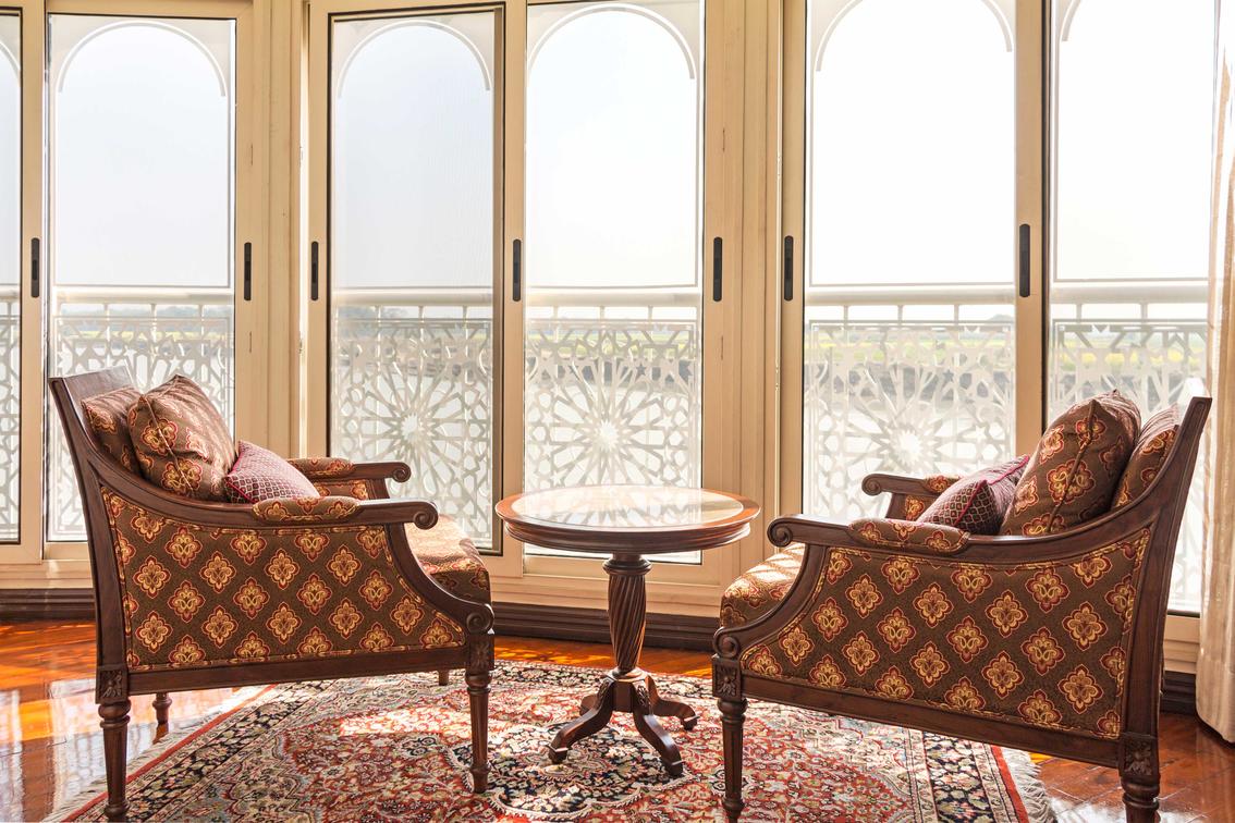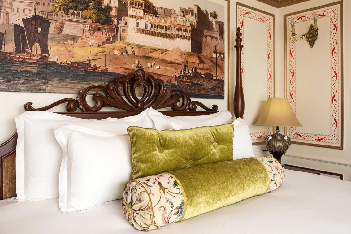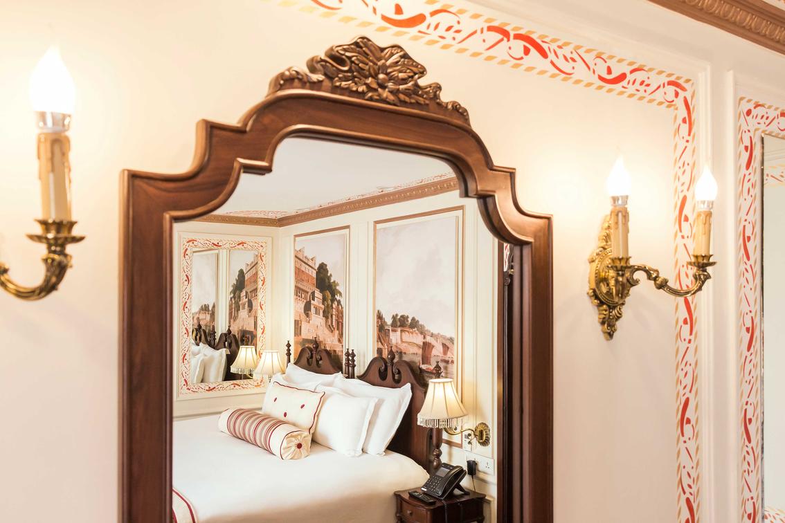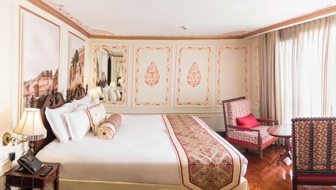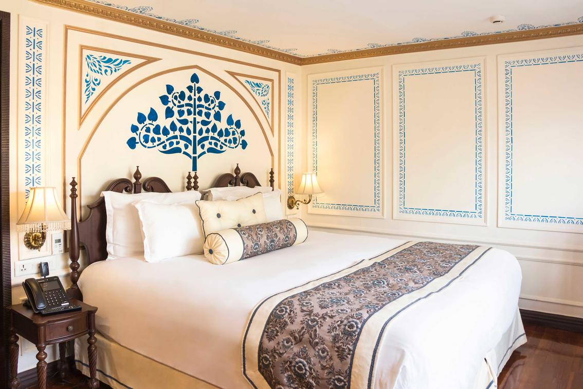 Located mid-ship on the upper deck, the Viceroy Suite offers a regal setting, designed for the most discerning traveller. Furnished in opulent Colonial Indian decor, the Viceroy Suite offers more than 360-square-feet of living space including a finely crafted day bed, Persian rugs, prints of picturesque views of the Ganga, hand-stencilled walls and a spacious bathroom.