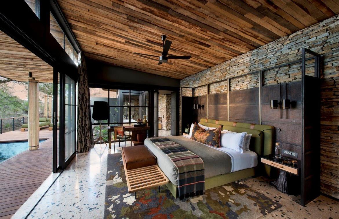 This magnificent lodge features nine enormous, air-conditioned, secluded suites, dotted in the dappled shade of the bushveld, each with panoramic river views. In addition to a master bedroom, bathroom and outdoor shower, there is a lounge, dining area, fully-stocked bar, coffee station and outdoor seating and dining area that guaranteed to take your breath away. A private lap pool on your spacious private deck comes complete with sunken outdoor lounge looking out onto the famed Sand River.