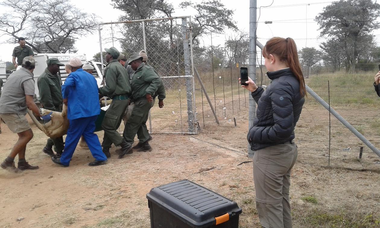 For ongoing monitoring, the rhinos and elephants have individual ID kits. The rhinos have been ear notched and ID kits made. The rhino ID kit includes a frontal photo and left and right profile pictures. The distinguishing features of the horn length and shape and ear notches are also recorded. The elephant ID kits use distinguishing features such as tusk characteristics, ears and scars. The elephants are fitted with collars for ease of tracking. The elephant ID kit includes a frontal photo and left and right profile pictures. The details of the tusks, ear venation and forehead wrinkles are the key features used to identify the animals.