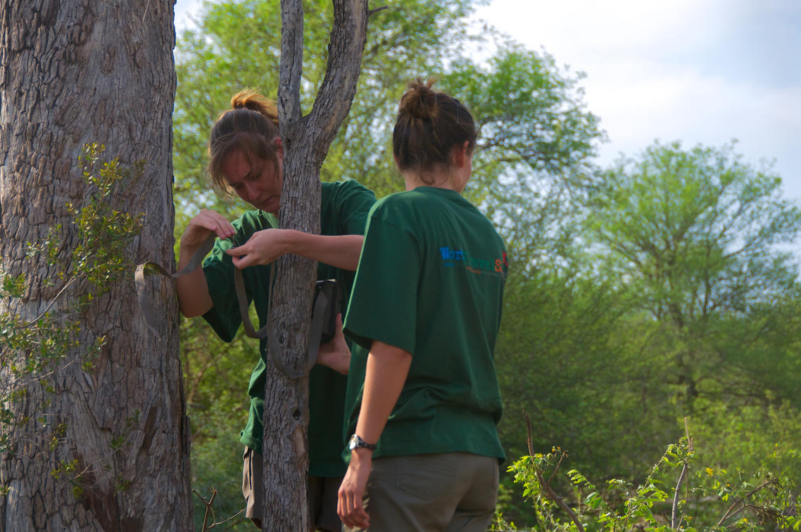 Volunteers receive hands-on experience in conservation research and practical biodiversity survey techniques such as habitat assessments (measuring trees and grass species), bird point counts (to determine utilisation in different habitats) and herbivore transects (observing herbivore and antelope behaviour in relation to predator activity). There are also 32 camera trap sites throughout the reserve which are in operation all year round. Volunteers are responsible for the set-up, installation and maintenance of faulty and damaged equipment at these camera trap sites. A large part of every day is also spent on the continued servicing of the cameras e.g. replacement of batteries and memory cards, as well as sorting of the photos in the data base. These studies are essential to understand the carrying capacity for large animals and the optimum numbers of different game species which can be sustained in this Highveld savannah vegetation.