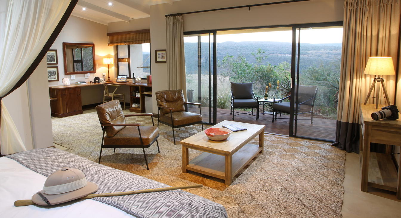 Fugitives’ Drift lodge and Guest House are located inside the Fugitives’ Drift game reserve on the lip of the Buffalo River gorge, at an altitude of 3,450 feet.