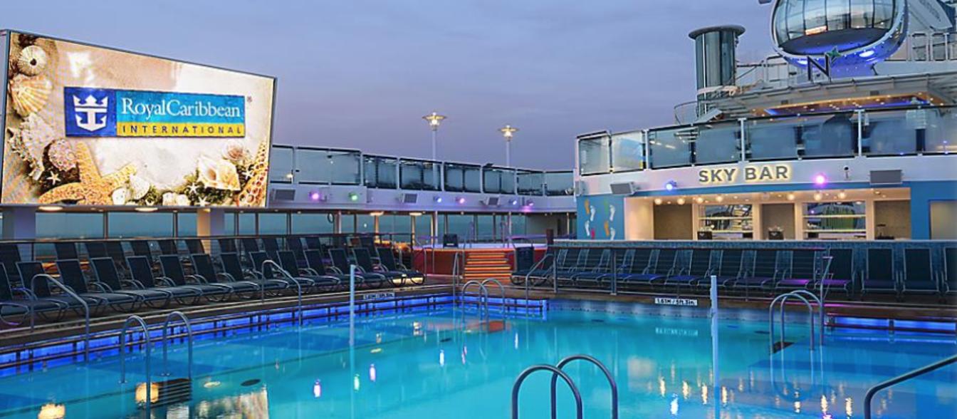 Guests can lounge on the pool deck under the stars and watch movies, live sporting events, and more on the 220 square foot movie screen.