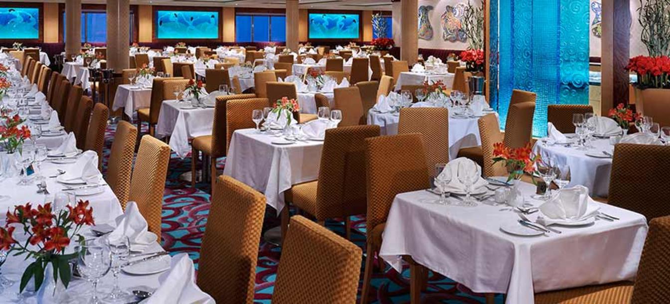 Aqua is one of the ship’s two main restaurants serving a variety of culinary delights with a contemporary flair. The restaurant is located on deck 6 and dining is complimentary.