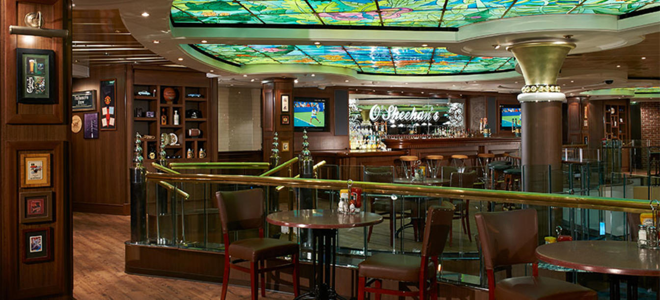 At O'Sheehan's Neighborhood Bar & Grill, guests can enjoy reinvented Irish pub classics whilst sipping their favourite draft beer, all in a casual atmosphere open 24 hours a day. The restaurant is located on deck 8 and dining is complimentary.
