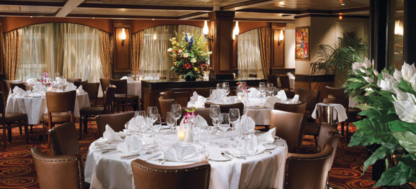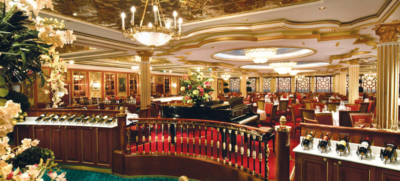 Versailles is one of the ship’s main dining rooms. The beautifully designed restaurant is located on deck 6 with stunning ocean views. The menu features traditional cuisine to please every palate and dining is complimentary.