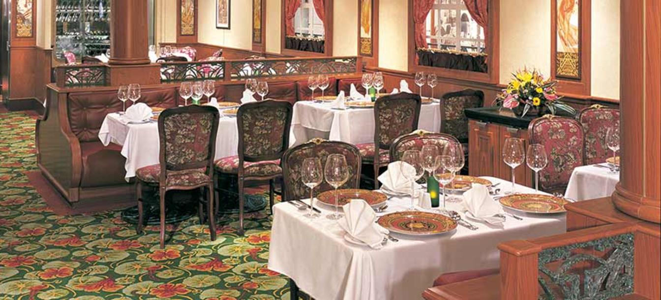 Located on deck 6, Le Bistro is the cruise line’s signature French restaurant featuring Mediterranean, nouveau and classic French cuisine.