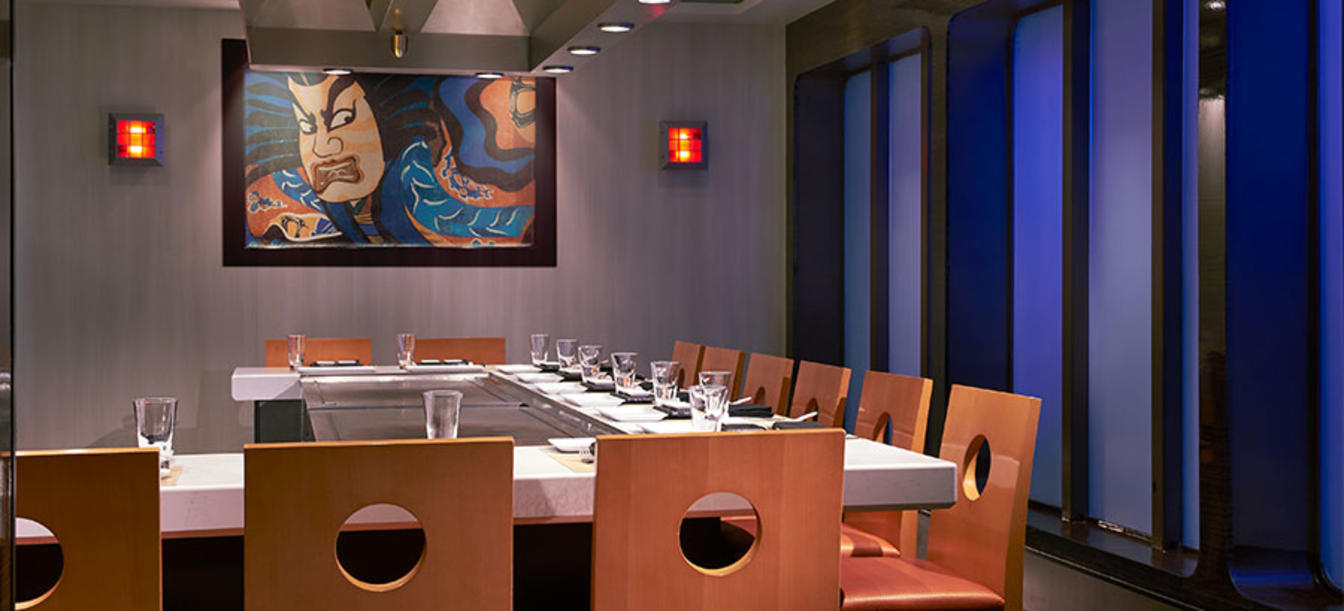 Teppanyaki is an authentic Japanese Hibachi restaurant. Diners sit at a lively shared table as a skilful chef perfectly grills steak, seafood, and chicken on a large steel grill.