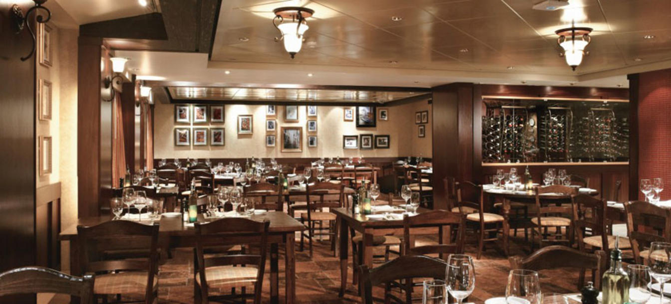 Steak is the standard at this American-style steakhouse on deck 13. Patrons can sip their favourite cocktail as they select from premium choice cuts of Angus beef perfectly prepared.