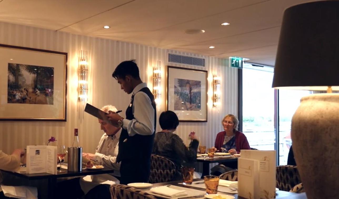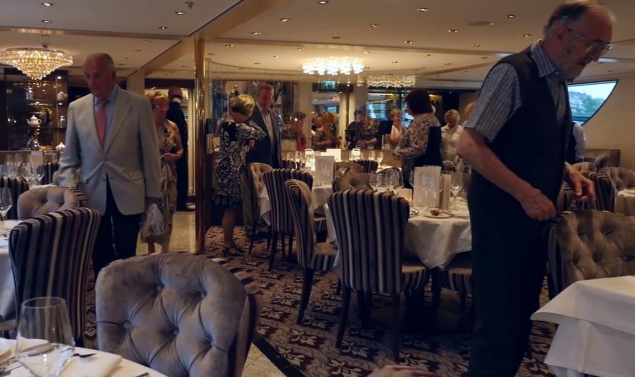 The ship’s restaurant is located on the Ruby (middle) Deck. Here guests will experience not only exceptional first-class cuisine but also the most attentive, yet discreet service from the ship’s highly professional crew. Diners can sit back with a well-deserved glass of wine from the carefully selected wine list and delight in the wonderful elegance of their surroundings with beautifully laid tables for 4 to 6 guests, crisp linen, deep wool carpets and warm wood panelling.