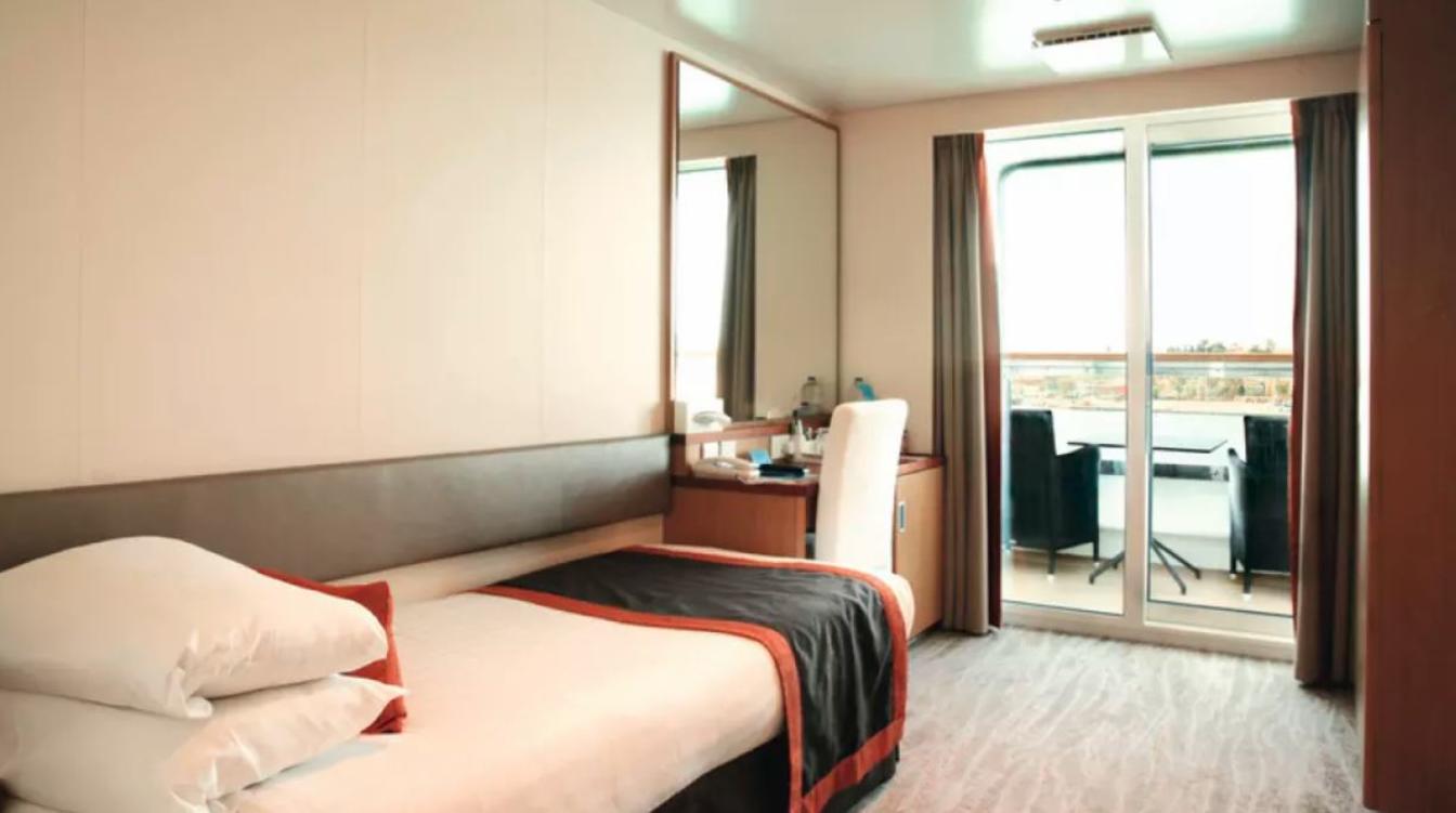 These cabins feature a furnished balcony and a single bed plus an en-suite bathroom with a shower.