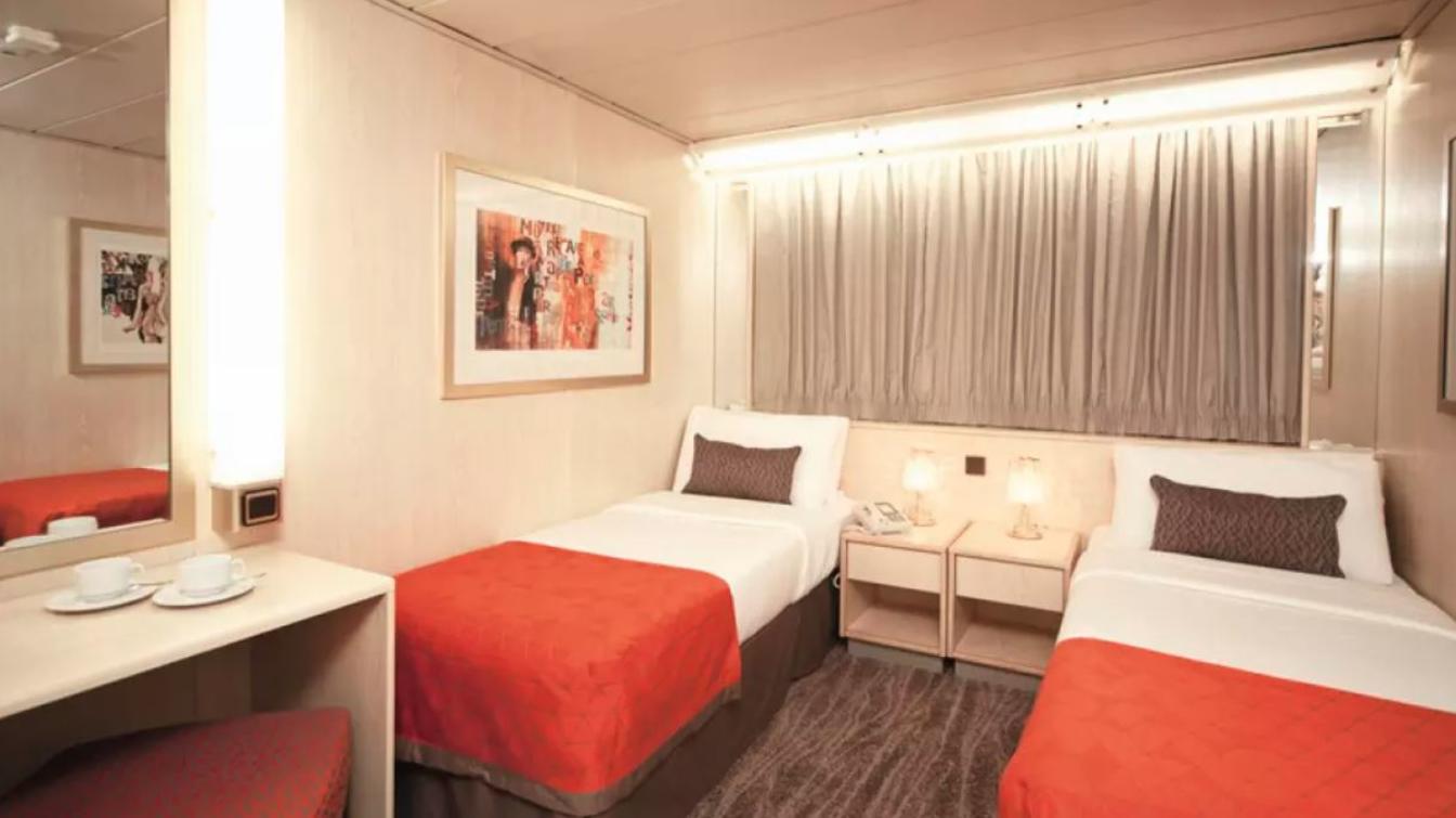 These cabins are centrally located and have a porthole or a picture window. The cabins feature two beds that convert to a queen-size bed. Amenities include an en-suite bathroom with a shower.