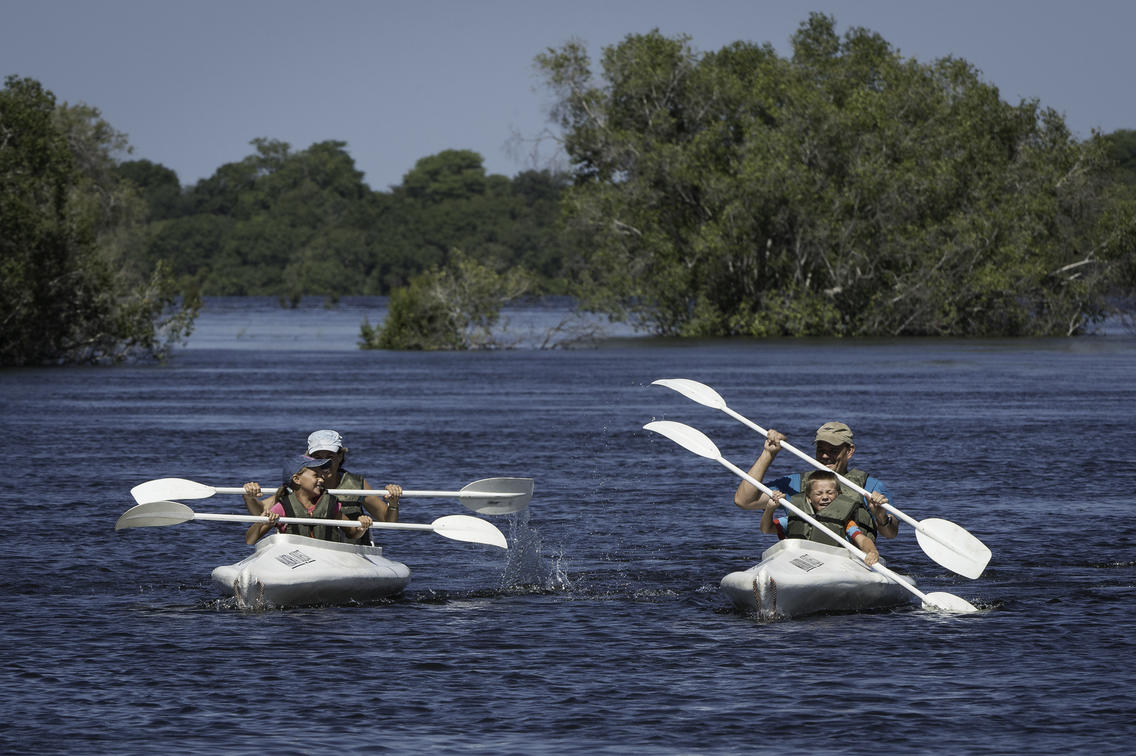 giraffe, zebra, lion and leopard. You will negotiate small but exciting rapids, canoe through narrow channels and drift down open stretches. No previous canoeing experience necessary.