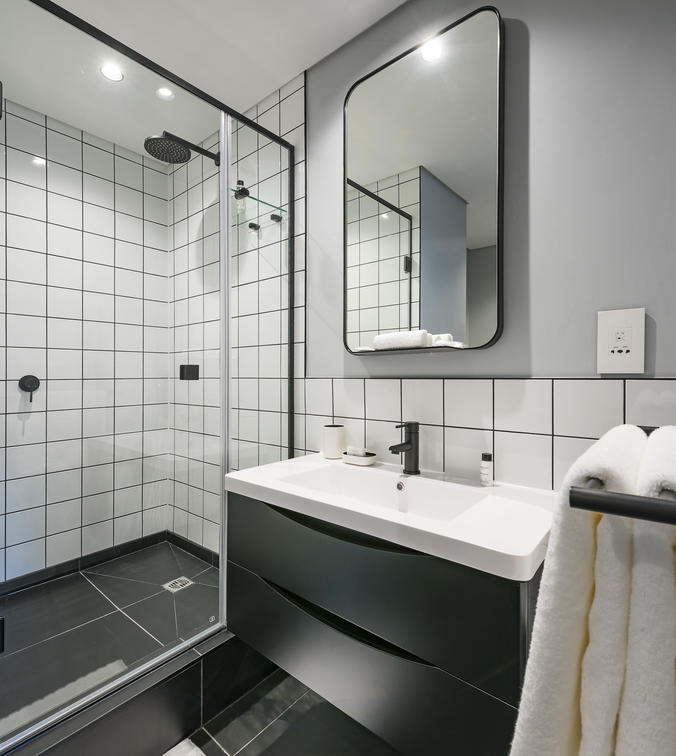 The 15 Studios are comfortably spacious, ranging from 35 to 52 m², and offer you all you need for a sophisticated city stay. Emeralds, greys and crisp whites come together beautifully, creating an elegant and inviting atmosphere.