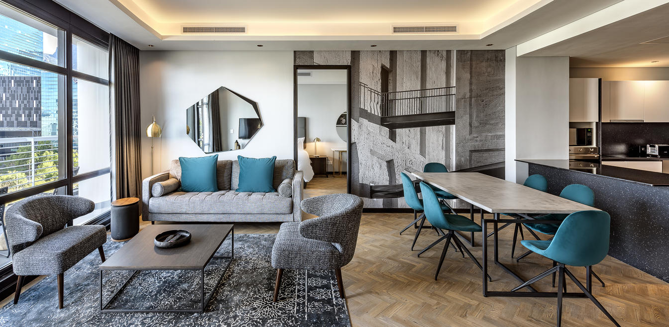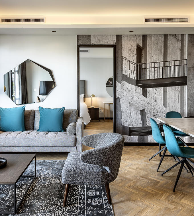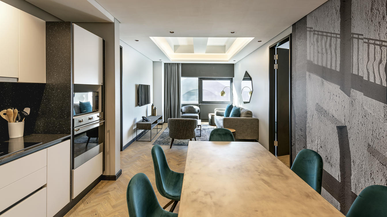 The 32 Deluxe Studios are also comfortably spacious like the Studios, ranging from 35 to 52 m², but have the added appeal of exceptional views. Like the Studios, modern greys and deep greens are juxtaposed with white decor elements to create sophisticated appeal in the Deluxe Studios.