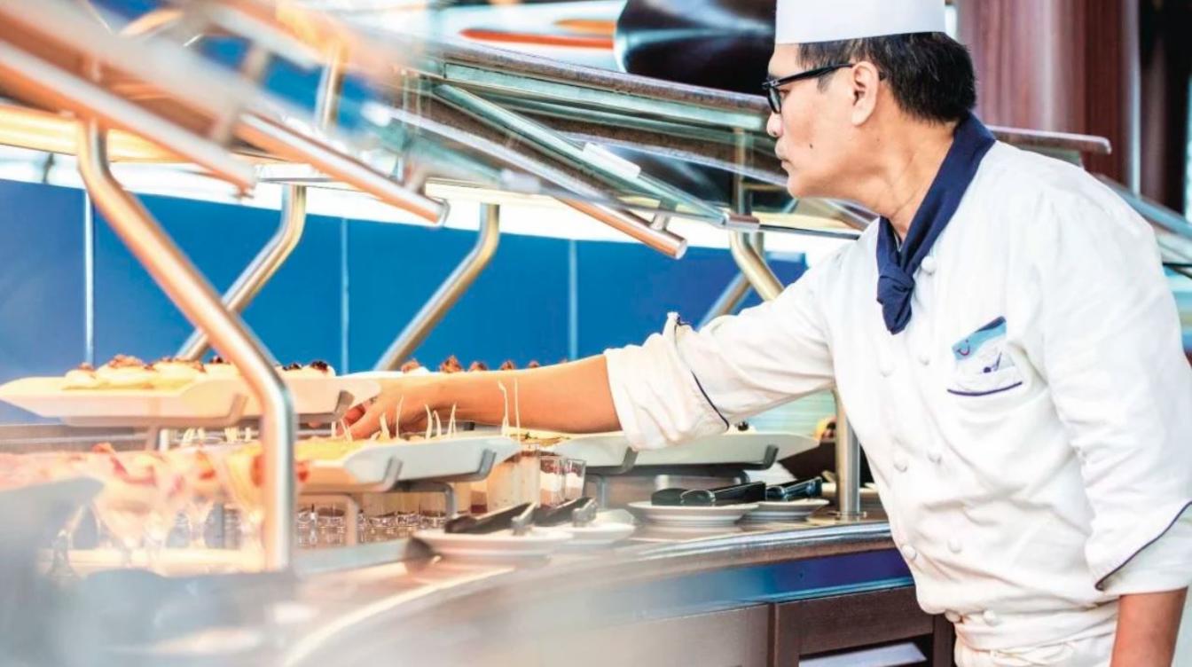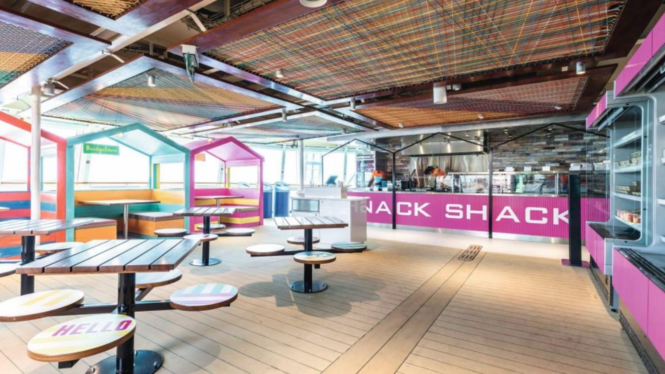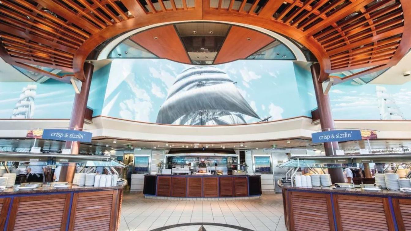 Guests will find this trendy Italian restaurant on the second floor of the ship’s main dining room, 47°. It’s a laid-back place, where bookings aren’t necessary, and its designer look features a colour scheme inspired by the sunset.