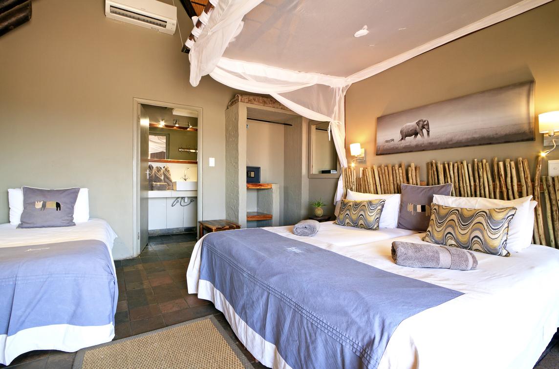 Construction of the lodge is such that half the rooms have a view over the plains and the other half a view of the red sandstone mountains. Specific views are very much a matter of personal preference\taste. Large spotlights light up the mountains at night providing for a majestic atmosphere. Rooms on the mountainside do have a bit more shelter from environmental elements, as well as a bit more privacy from the main walkways between the rooms and the main building. Please do inform the reservations office should a specific “room view” have preference. They will do their best to accommodate individual requests.