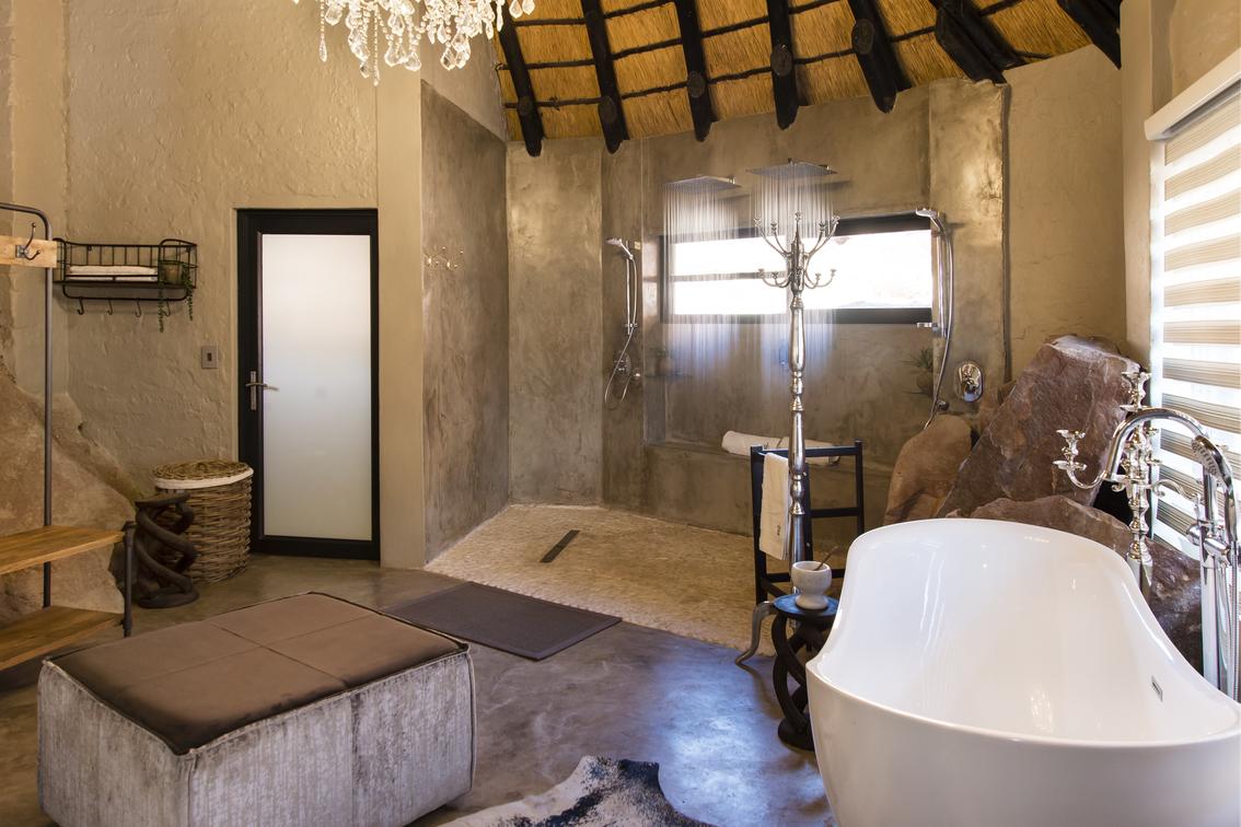 The stunning luxury suite is a perfect African retreat. Built around natural rock features and blending seamlessly into the rocky mountain, this suite will enchant any guest, making your stay an extra special experience. The spacious full bathroom exudes tranquillity and the suite comes complete with its very own lounge, kitchen nook, private pool, private terrace, balcony, satellite television, king size bed and mini bar. This intimate setting with its breath-taking views over the landscape is ideal for honeymooners, couples on a romantic retreat or the distinguished guest.