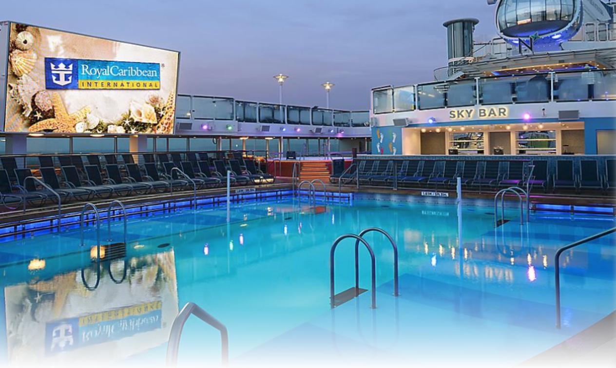 Why watch a movie inside? Lounge on the pool deck with an ocean breeze, the moon, and movie stars as big as all outdoors. The 220 square foot movie screen presents first-run movies, live sporting events and more at the pool area on select ships.