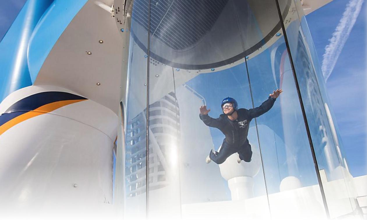 Experience the exhilaration of skydiving without ever leaving the deck, courtesy of RipCord by iFLY. Feel what it's like to fly, as you float on air within the safe confines of this groundbreaking simulator. It's a whole new thrill for thrill seekers of all kinds.