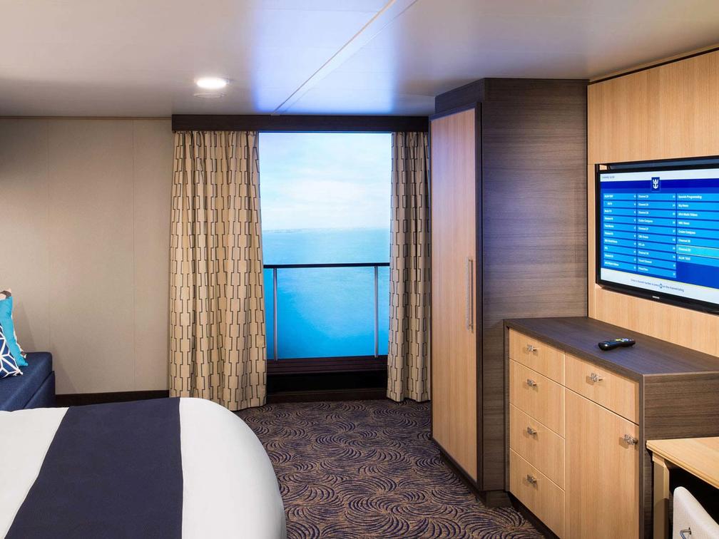 Enjoy beautiful views of exotic ports, landscapes, seas and skies from your large private balcony. (Up to 4 guests)