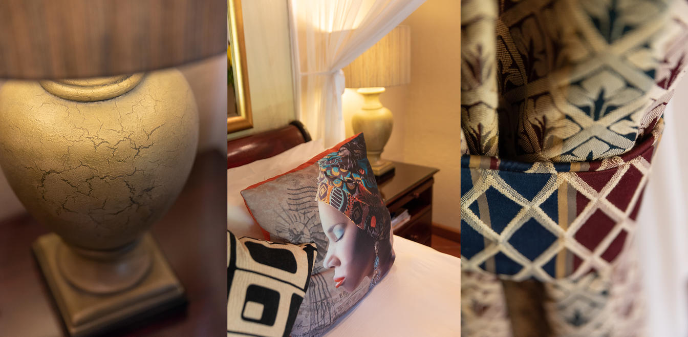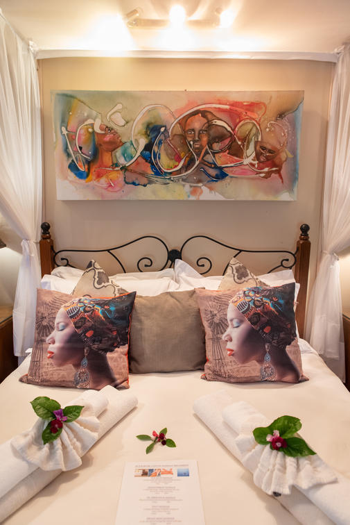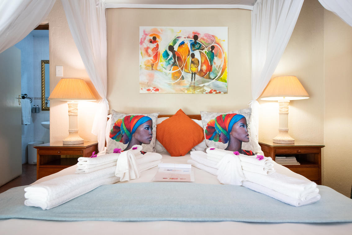 A blend of Victorian and African decor compliments this unique and elegant luxurious four bedroom, four bathroom house which also includes a lounge, dining room, bar, TV lounge and a fully equipped kitchen. The fourth bedroom, which is our luxury double bed private Garden room with shower en suite, has doors leading out to the garden and swimming pool, and is attached to the main house with its own
