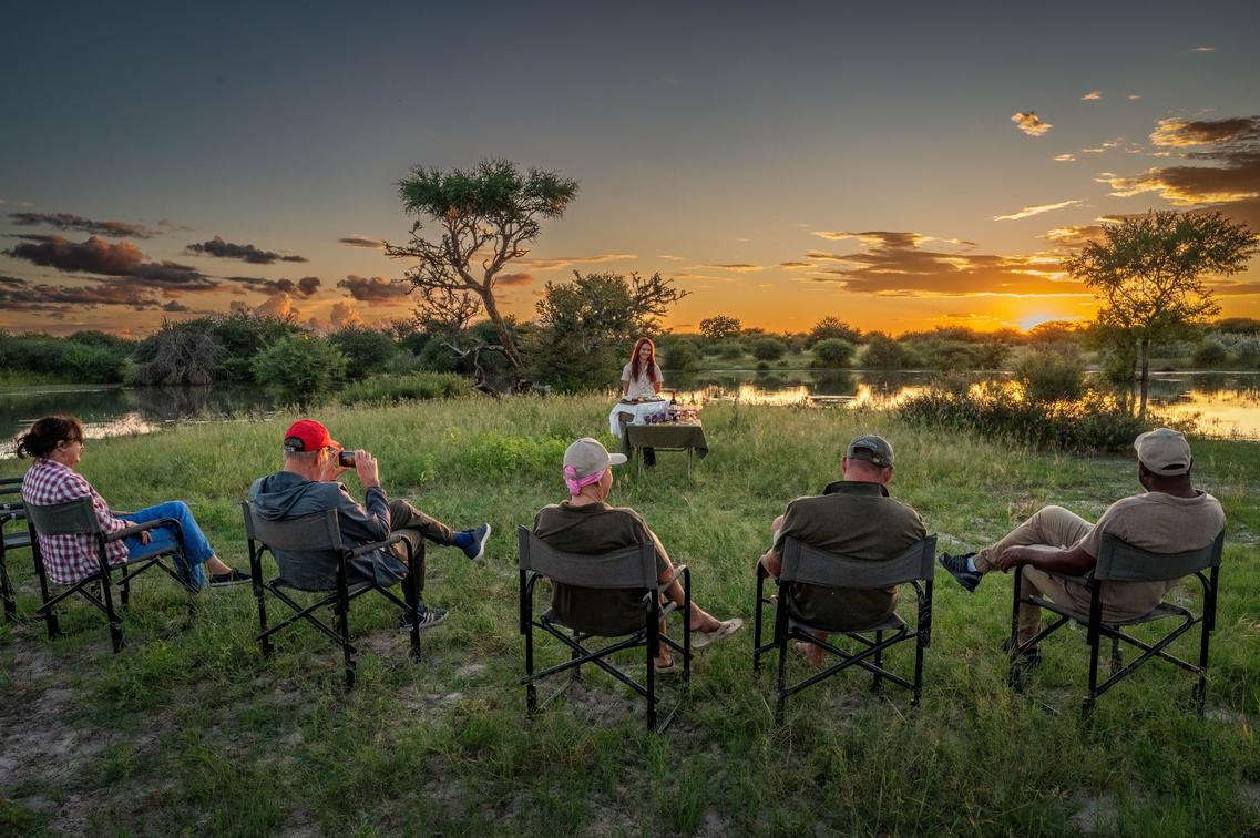 Set against a backdrop of golden grasses and open skies, you'll be guided to a handpicked location – perhaps under a centuries-old camelthorn tree or beside a waterhole frequented by wildlife. As the light shifts and the landscape takes on a warm, amber hue, you’ll find yourself immersed in the timeless rhythm of the bush.