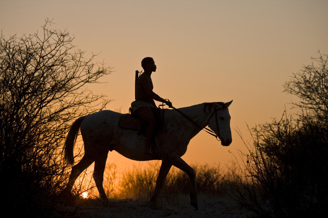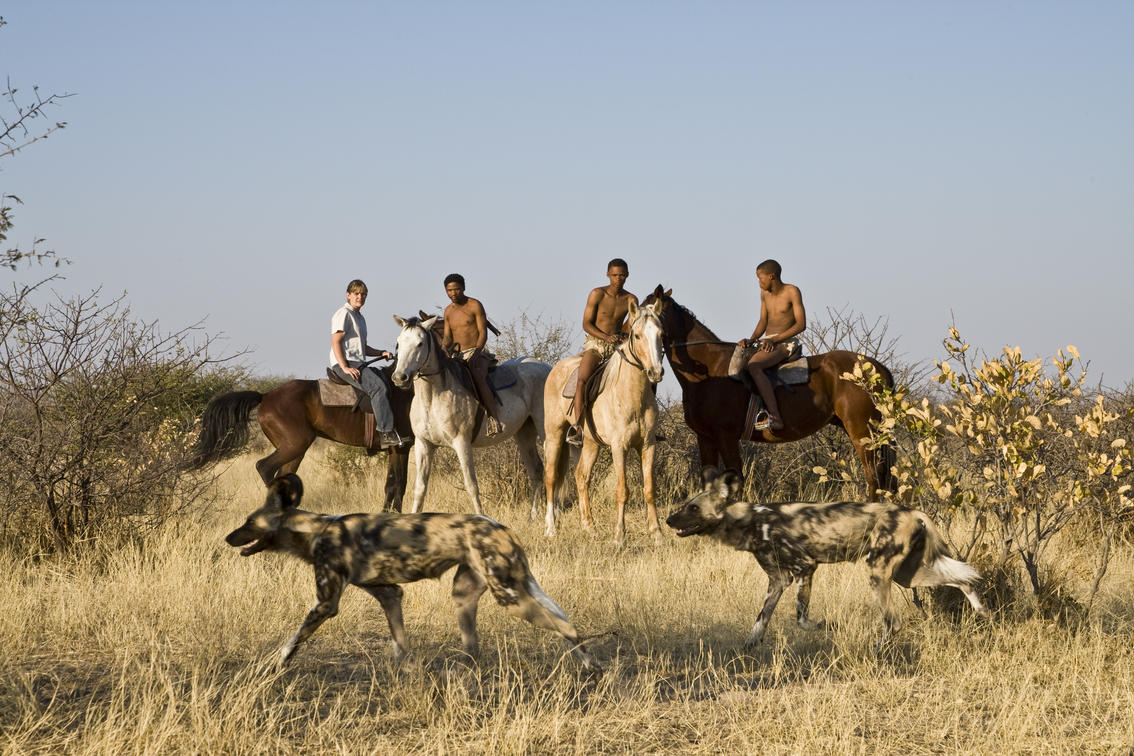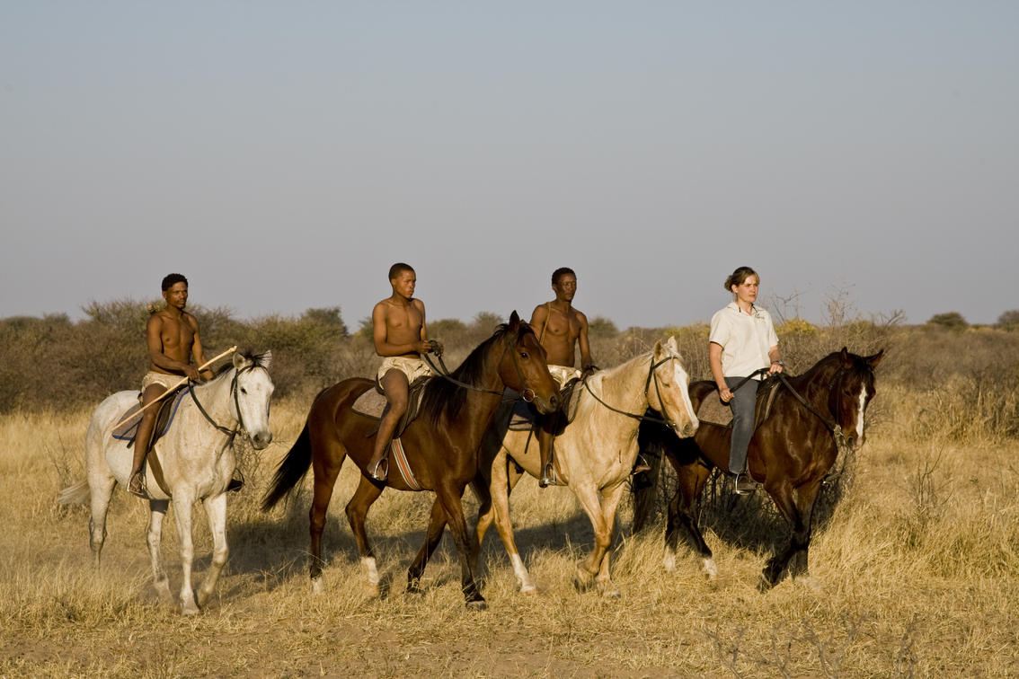 Meet up with the San and the horses first thing in the morning for a quiet ride in single file to view the animals up-close.