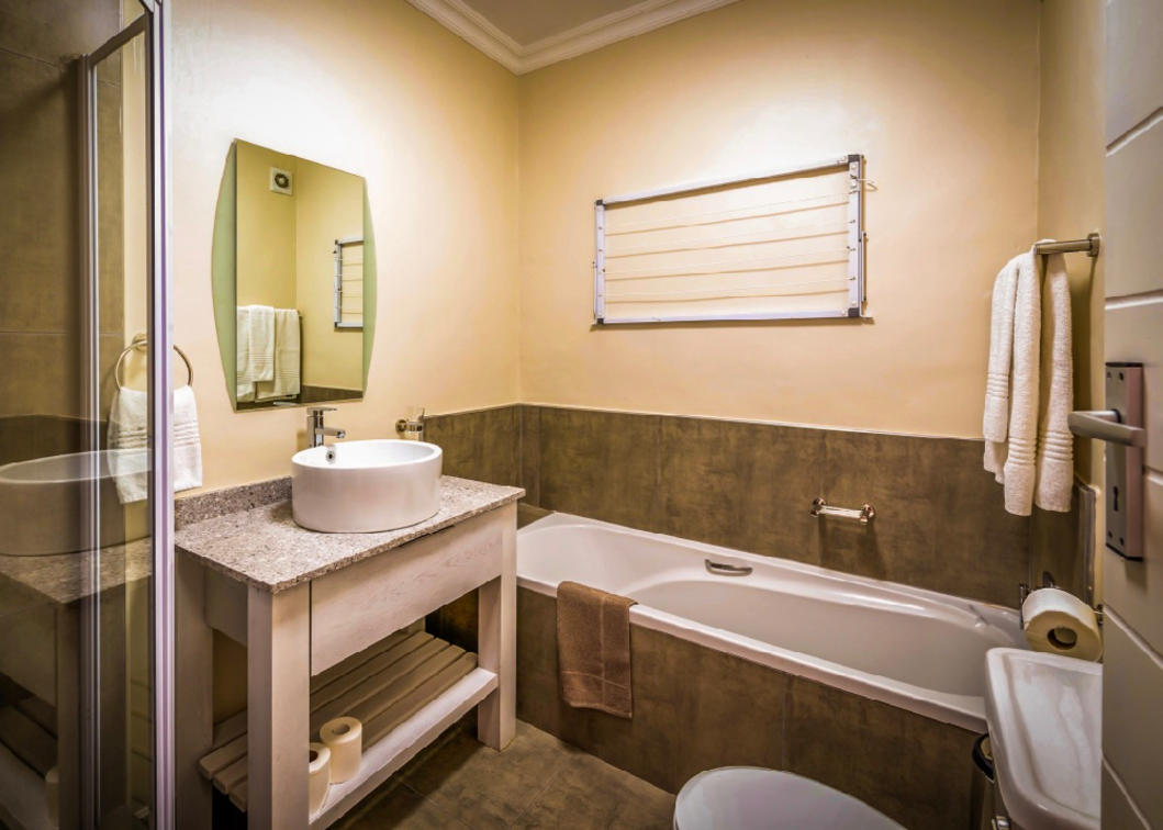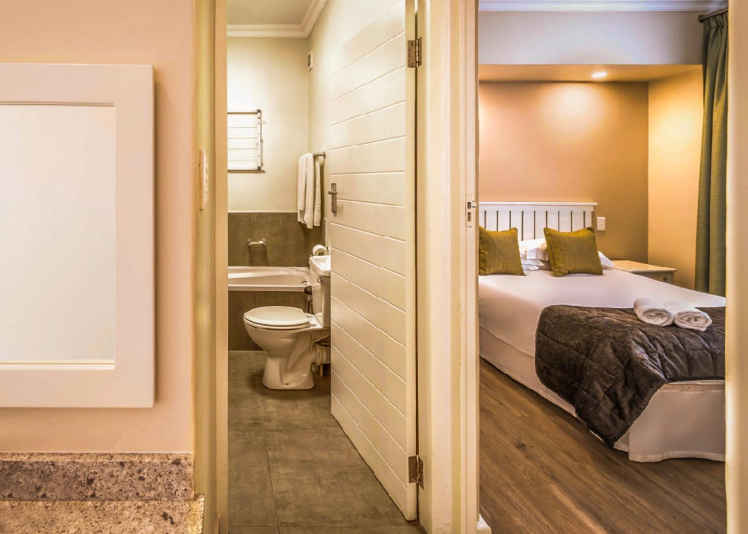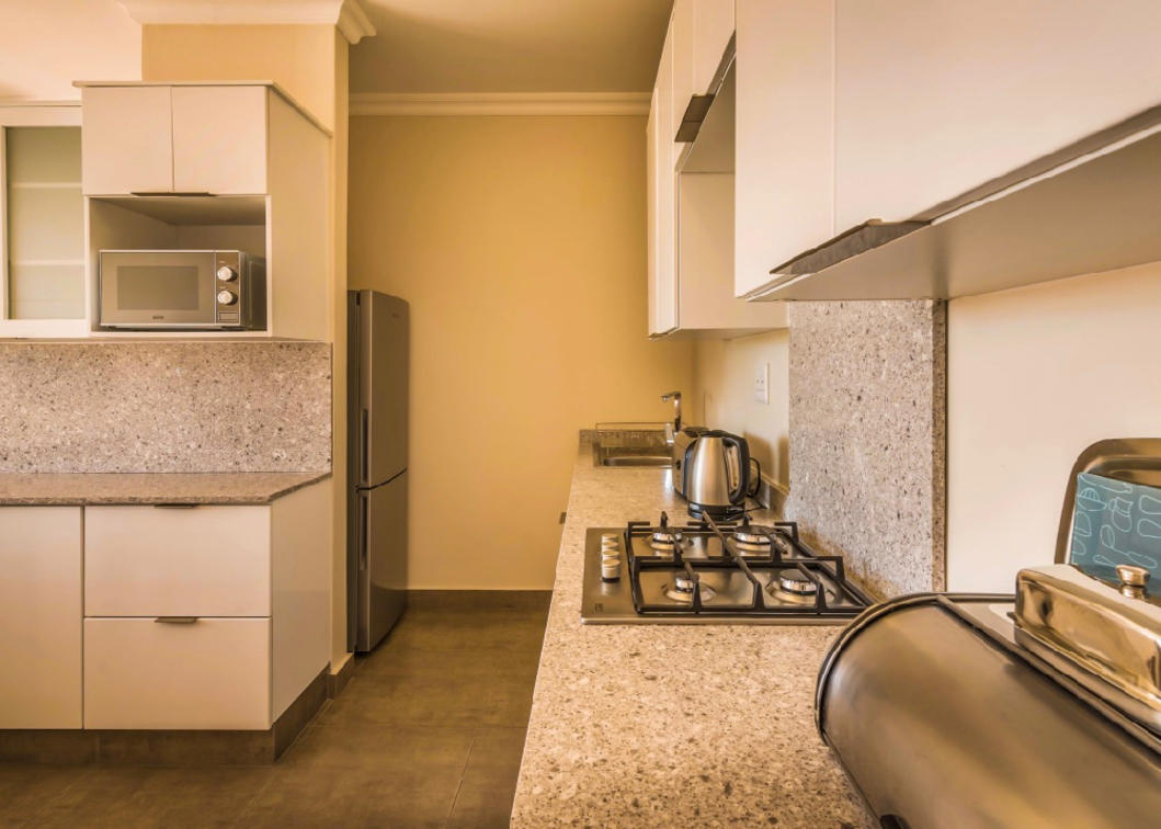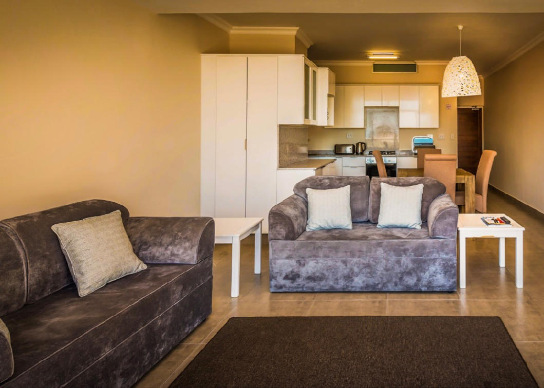 Fully self catering apartment sleeps maximum 4 people. Consists of 1 room and sleeper couch in the lounge. Bedroom has double bed. Lounge have 2 single sleeper couches (only suitable for 2 children under 12 years). Kitchen. Bathroom. TV with selected DSTV channels. Serviced daily except Sundays and Public Holidays.
