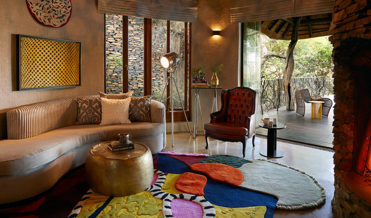 Metsi suite features an 'art rug' by South African contemporary artist, Maja Marx.