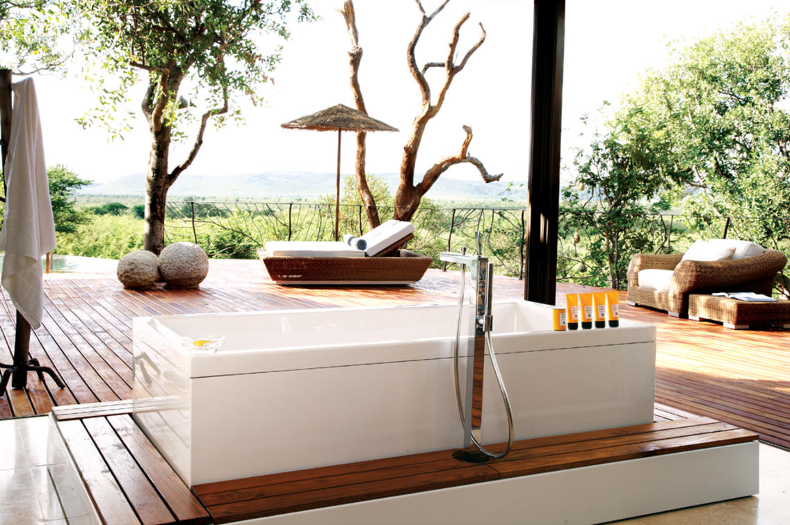 The 593 square metre Metsi presidential suite is truly breathtaking. An awe-inspiring mix of contemporary design and African art and artefacts. The floor-to-ceiling glass walls fold away completely, revealing an equally spacious wooden deck, private infinity pool, jacuzzi and alfresco dining area. Metsi suite features a large master bedroom and ensuite bathroom with a large, bath and shower overlooking the deck with views. It also features an outdoor shower.
