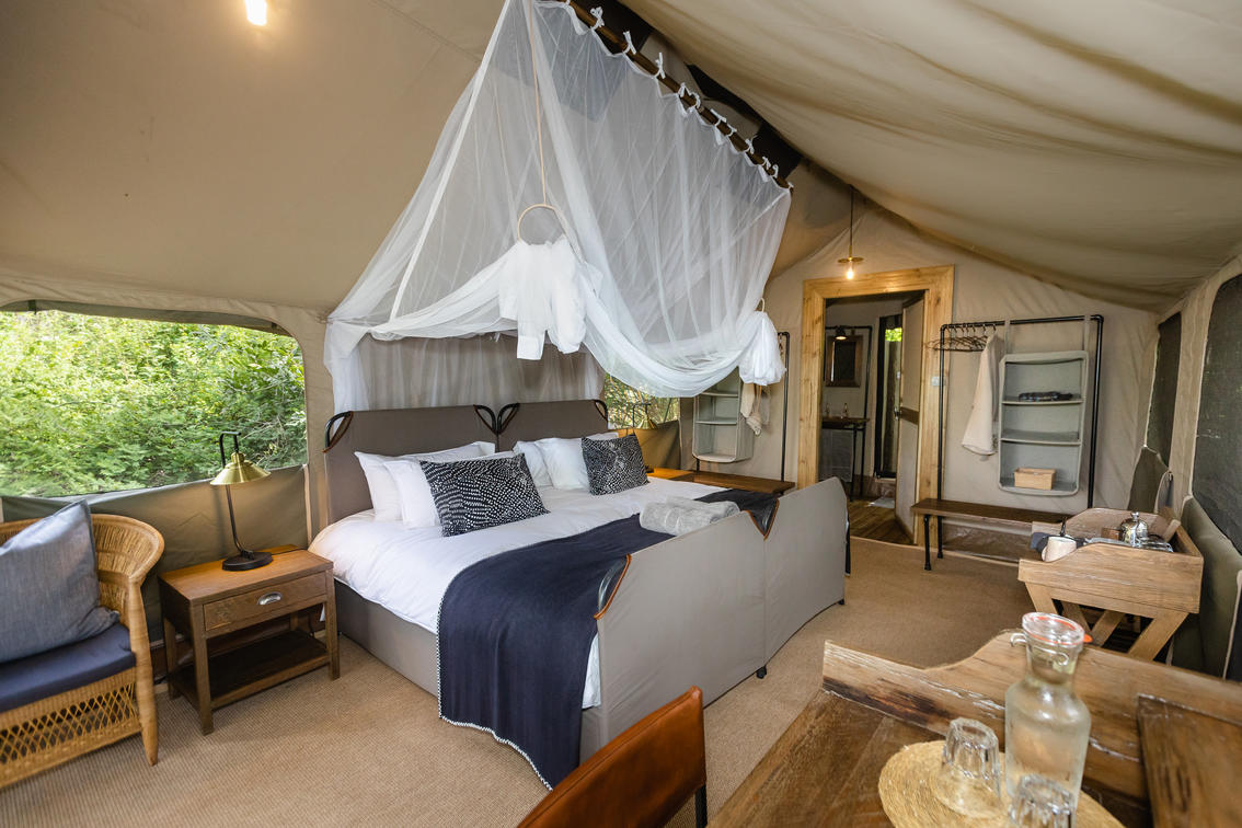 The large airy safari tents are nestled on the edge of the island on the banks of the Zambezi River under the shade of deep forest. Each tent has a small covered verandah set near the river’s edge and looks directly across to the Zambezi National Park. The tents have both indoor and outdoor showers.