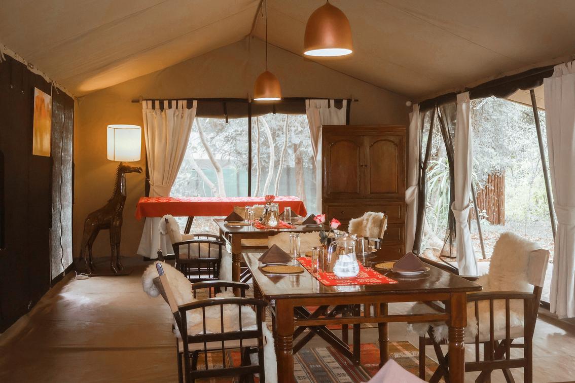 Breakfast, which is included in the stay, provides a hearty start to the day with freshly brewed coffee or tea, seasonal fruit, pastries or breads, and a warm dish such as eggs, sausages, or pancakes. Lunch and/or dinner can be arranged at an additional cost, allowing guests to choose how they’d like to dine during their stay. Lunch is typically light and informal, featuring salads, grilled meats, or vegetarian dishes enjoyed under the shade of trees or in the dining tent. In the evening, dinner becomes a more elegant experience with a three-course menu of soups, roasts, and desserts served by lantern light or under the stars.