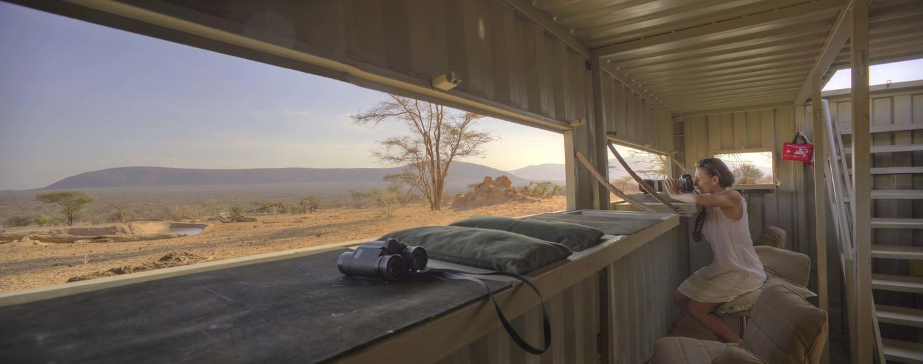 Saruni Samburu offers guests a unique experience for Kenya: access to an elephant-proof, open ground level hide based at a waterhole, where from both novice and professional photographers can photograph wildlife from ground level. Designed with the needs of photographers in mind, buried partially underground, located a few steps from a waterhole: the perfect spot for 'stealing' amazing images of what occurs at the well-frequented waterhole. It can have up to 8 guests inside, it has maps and books available, and bean bags for photographers. The waterhole at Saruni Samburu offers a unique opportunity to spot from very close up the elephants that come and drink its water, the fantastic birds species and the 'Samburu Five'; reticulated giraffe, Beisa oryx, gerenuk, Somali ostrich and Grevy’s zebra. Being in the middle of an arid area, the hide also provides excellent opportunities to photograph from ground level and from very close up the predators of Samburu, especially lion and leopard.