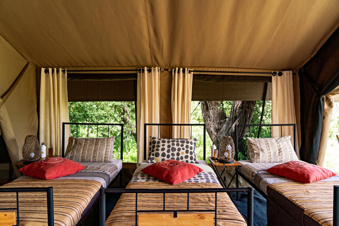 Triple tents can be made up with a double plus a single bed or with three single beds. All tents have ensuite shower rooms with hotel and cold running water 24/7. All tents are supplied with solar electricity. Complimentary WiFi is available throughout the camp.