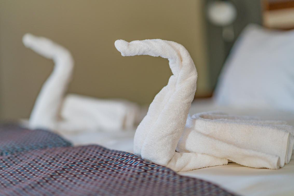 Every room has its own garden, surrounded by a low wall. The rooms are spacious, have twin beds, and en suite bathrooms. All the rooms have air-conditioning and complimantary tea and coffee facilities. For family rooms, request rooms with interlead doors