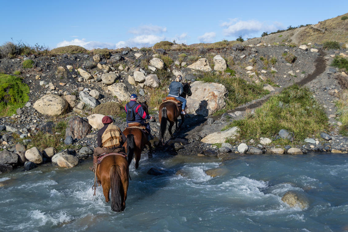 Ride towards the valley on the little known trails that the colonists and baqueanos used in Patagonia’s early days. You’ll look up at imposing rock walls and a spectacular view of the Las Torres Mountains, while feeling truly connected to the horse and the environment around you. Skirting the slopes of Mount Paine, we’ll make a stop to enjoy the landscape, where you’ll note a unique microclimate and distinct vegetation. After the valley, you’ll have glorious views of Mount Almirante Nieto and feel the serenity of Lake Nordenskjöld. If you’re lucky, you’ll see traces of puma as you pass by the “Puma Cave” on the way back to the stables. Guided by our baqueanos, riders of all levels will love getting a glimpse into the culture and heart of Patagonia.