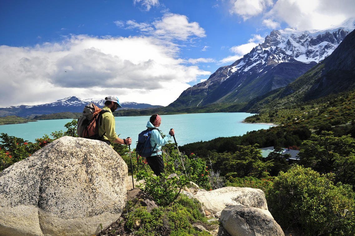 Before leaving, don’t forget to look behind you! The lakes below, surrounded by mountains, seal the deal on this panoramic view. Here, you will witness an awe-inspiring 360 degrees of the Nordenskjöld, Pehoé and Toro Lakes, and the Paine Grande, Hoja, Máscara, Espada, Fortaleza and Aleta de Tiburón Mountains.