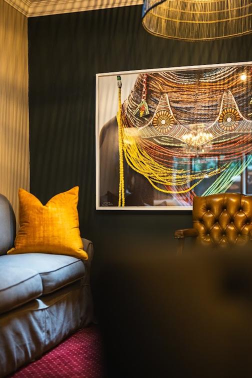 commissioned oil painting of Nelson Mandela in the entrance lounge. Inside, a cozy fireplace and sophisticated interiors lead to a sumptuous bedroom with a well-appointed bathroom. Outdoors, a terrace lounge and dining area, Jacuzzi, and sun loungers provide a private sanctuary of relaxation. With 150m² of indoor and outdoor space, this suite combines opulence, elegance, and a profound sense of place.